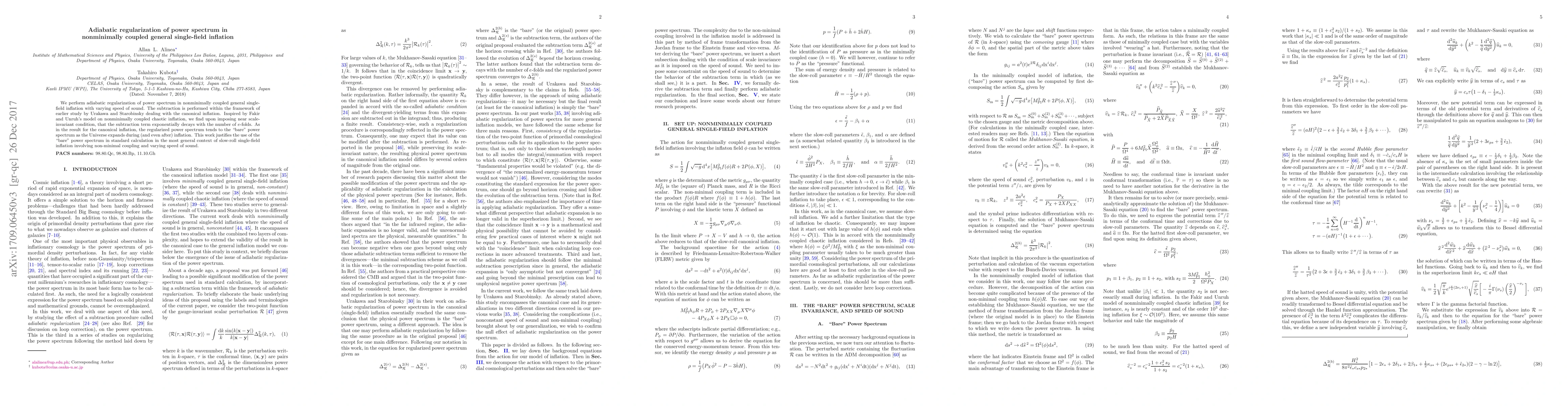We perform adiabatic regularization of power spectrum in nonminimally coupled general single-field inflation with varying speed of sound. The subtraction is performed within the framework of earlier study by Urakawa and Starobinsky dealing with the canonical inflation. Inspired by Fakir and Unruh's model on nonminimally coupled chaotic inflation, we find upon imposing near scale-invariant condition, that the subtraction term exponentially decays with the number of $ e $-folds. As in the result for the canonical inflation, the regularized power spectrum tends to the "bare" power spectrum as the Universe expands during (and even after) inflation. This work justifies the use of the "bare" power spectrum in standard calculation in the most general context of slow-roll single-field inflation involving non-minimal coupling and varying speed of sound.