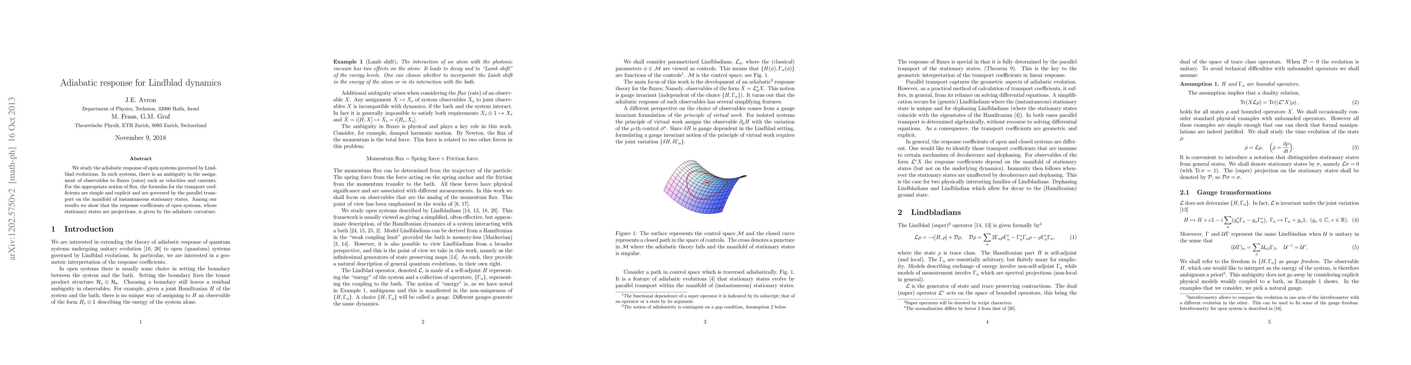 We study the adiabatic response of open systems governed by Lindblad evolutions. In such systems, there is an ambiguity in the assignment of observables to fluxes (rates) such as velocities and currents. For the appropriate notion of flux, the formulas for the transport coefficients are simple and explicit and are governed by the parallel transport on the manifold of instantaneous stationary states. Among our results we show that the response coefficients of open systems, whose stationary states are projections, is given by the adiabatic curvature.