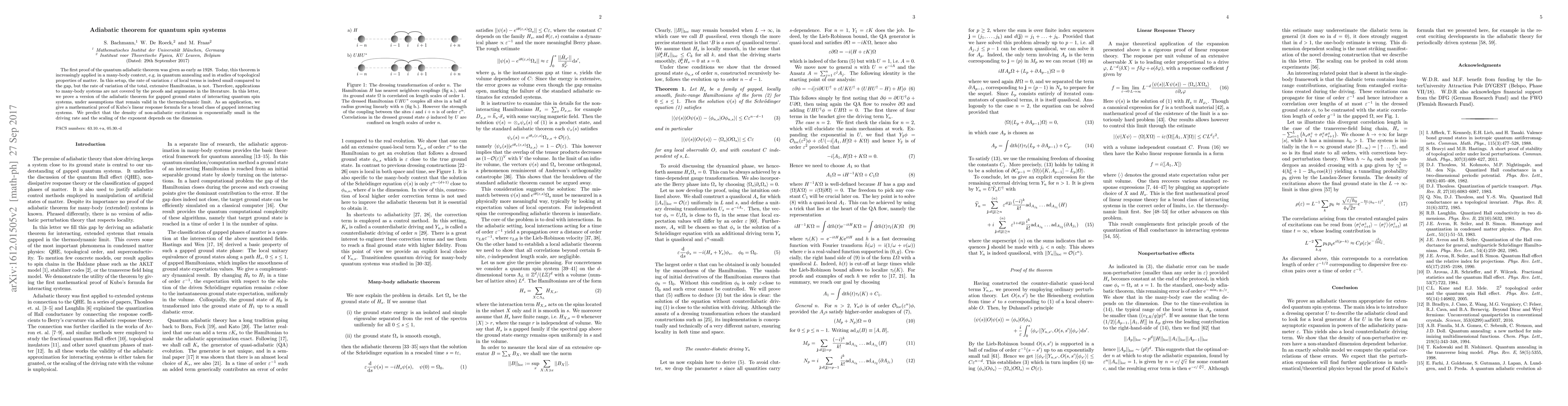 This paper proves a new version of the adiabatic theorem for quantum spin systems, addressing the limitations of existing proofs that do not cover the rate of variation of the total Hamiltonian. It also provides a mathematical proof of the Kubo linear response formula for a wide range of gapped interacting systems.