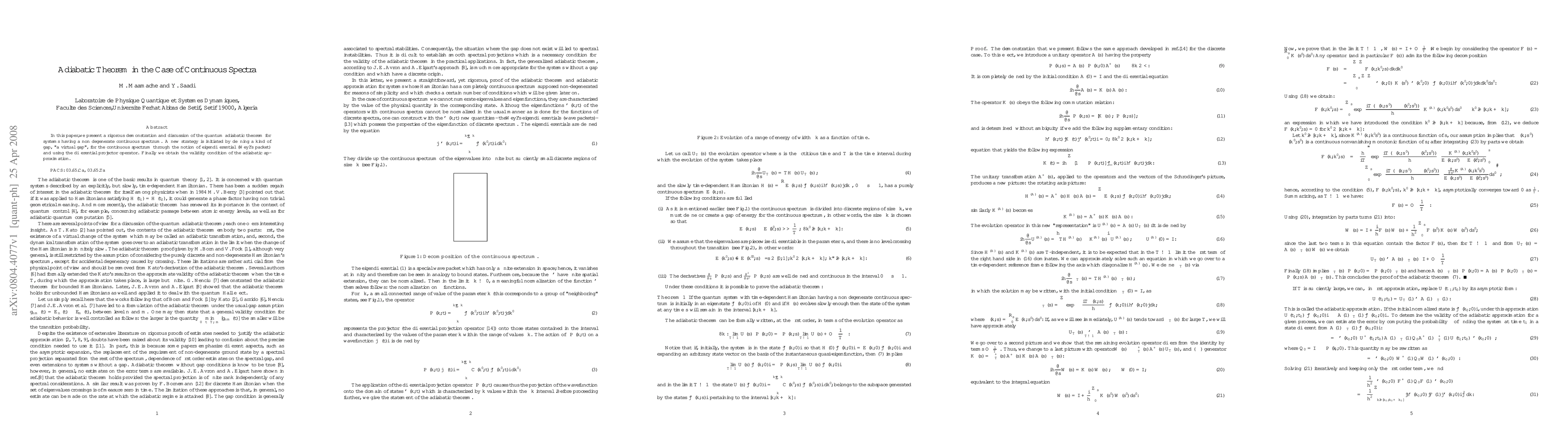 In this paper,we present a rigorous demonstration and discussion of the quantum adiabatic theorem for systems having a non degenerate continuous spectrum. A new strategy is initiated by defining a kind of gap, "a virtual gap", for the continuous spectrum through the notion of eigendifferential (Weyl's packet) and using the differential projector operator. Finally we obtain the validity condition of the adiabatic approximation.