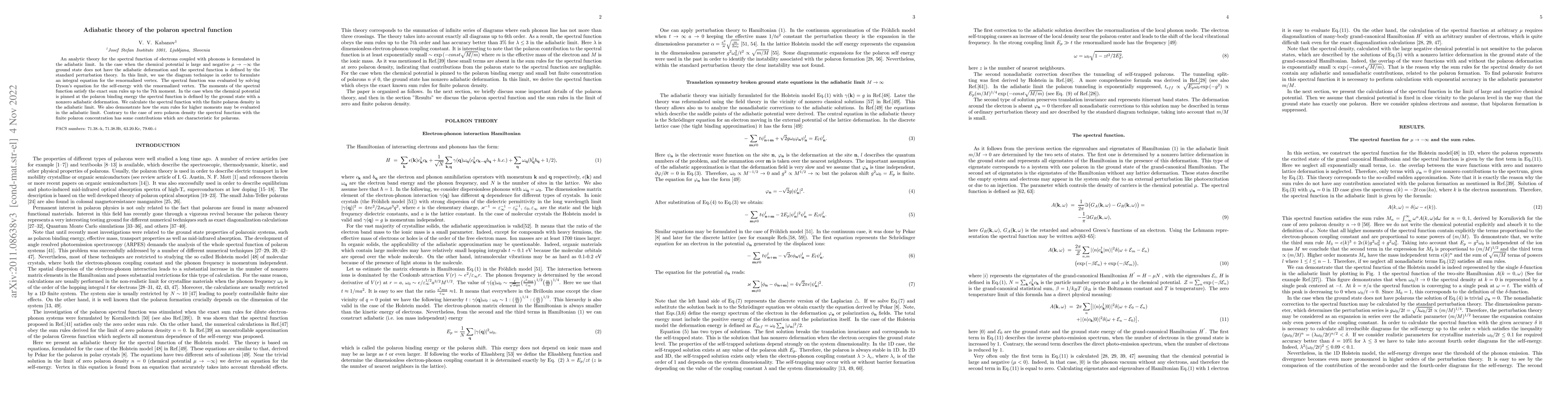 This paper develops an analytic theory for the spectral function of electrons coupled with phonons in the adiabatic limit, showing how the spectral function varies with the electron-phonon coupling constant and the chemical potential. It highlights differences in spectral function behavior between zero and finite polaron densities.