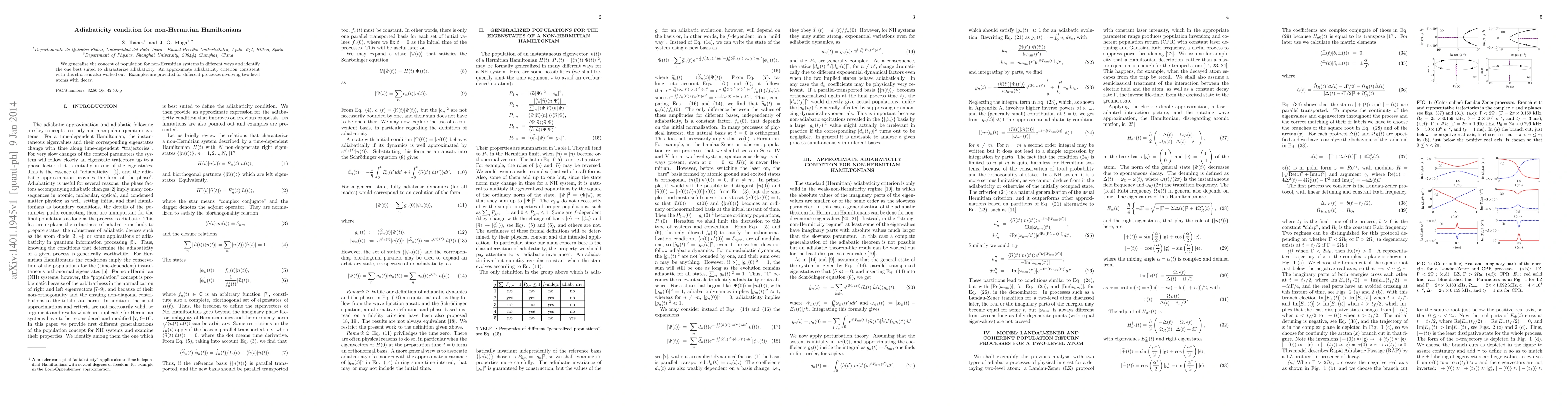 We generalize the concept of population for non-Hermitian systems in different ways and identify the one best suited to characterize adiabaticity. An approximate adiabaticity criterion consistent with this choice is also worked out. Examples are provided for different processes involving two-level atoms with decay.