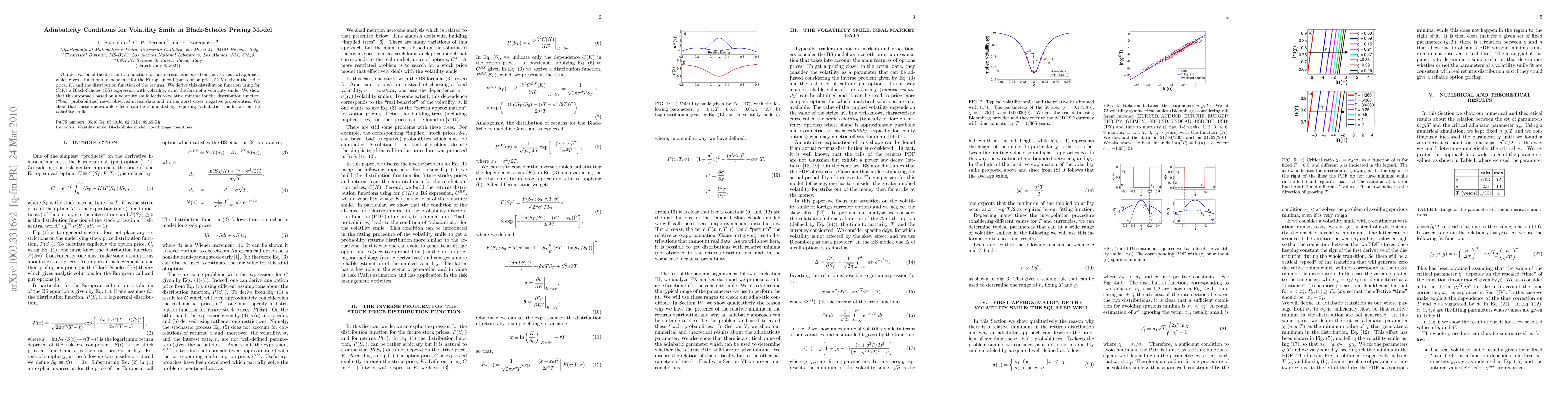 This paper explores the Black-Scholes model with a volatility smile, revealing that it can produce unrealistic "bad" probabilities and negative probabilities in the distribution function for future returns. The authors propose that enforcing adiabaticity conditions on the volatility smile can eliminate these undesirable effects.