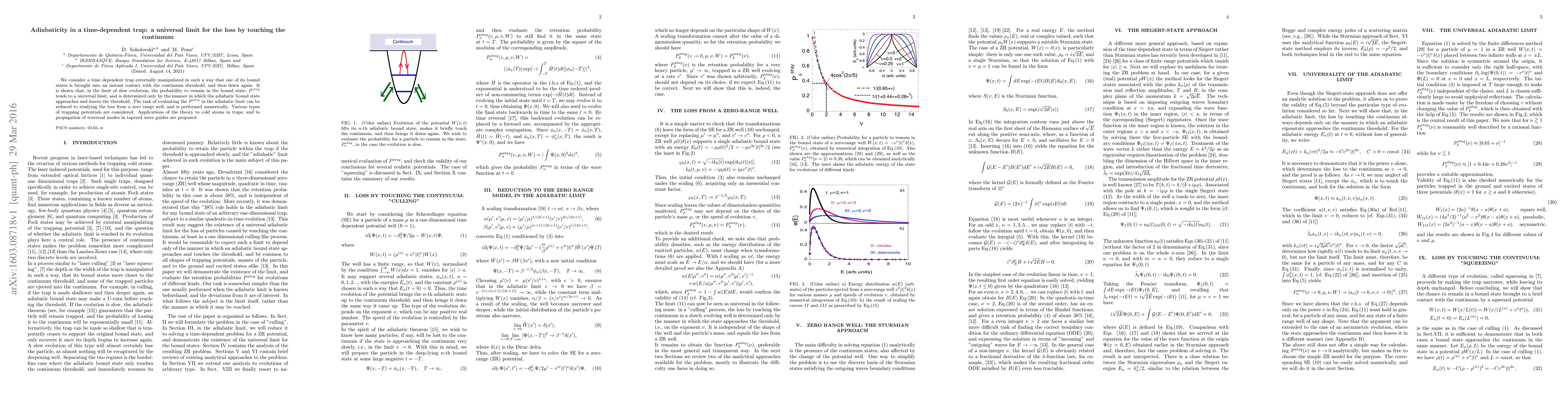 We consider a time dependent trap externally manipulated in such a way that one of its bound states is brought into an instant contact with the continuum threshold, and then down again. It is shown that, in the limit of slow evolution, the probability to remain in the bound state, $P^{stay}$ tends to a universal limit, and is determined only by the manner in which the adiabatic bound state approaches and leaves the threshold. The task of evaluating the $P^{stay}$ in the adiabatic limit can be reduced to studying the loss from a zero range well, and is performed numerically. Various types of trapping potentials are considered. Applications of the theory to cold atoms in traps, and to propagation of traversal modes in tapered wave guides are proposed.