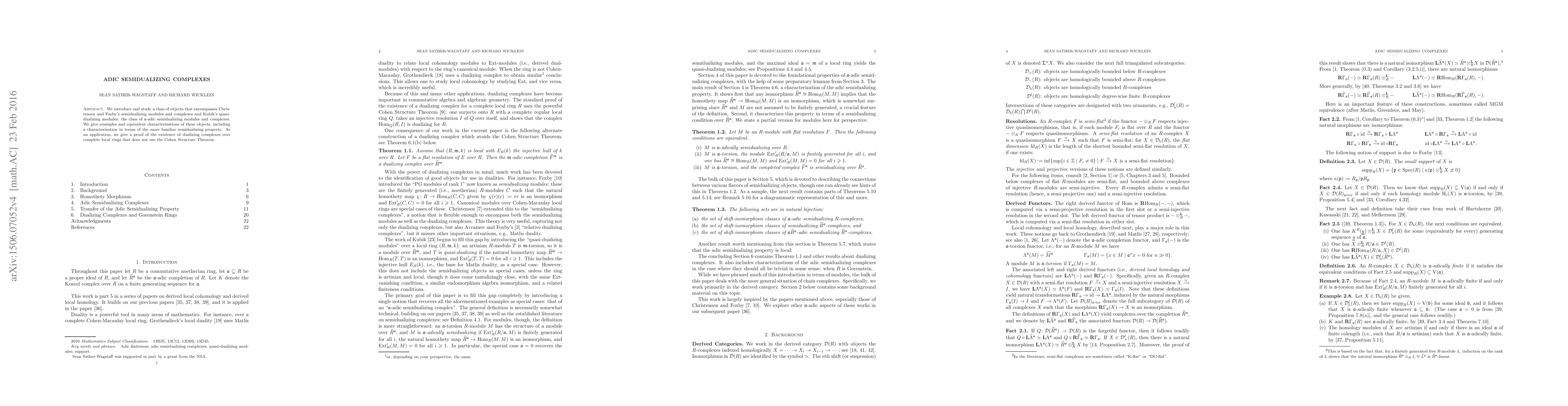 The paper introduces $\mathfrak{a}$-adic semidualizing modules and complexes, generalizing semidualizing modules and complexes, and provides their characterizations and examples. It also proves the existence of dualizing complexes over complete local rings without relying on the Cohen Structure Theorem.