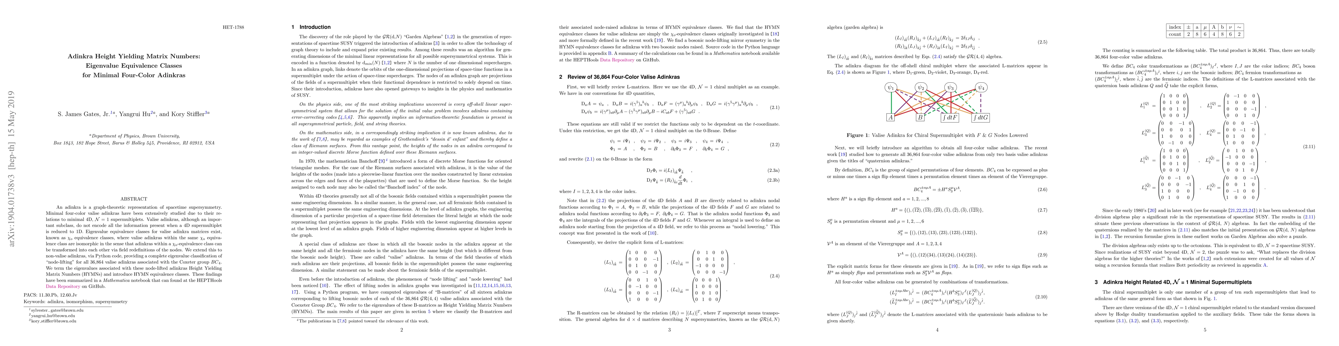 An adinkra is a graph-theoretic representation of spacetime supersymmetry. Minimal four-color valise adinkras have been extensively studied due to their relations to minimal 4D, $\cal N$ = 1 supermultiplets. Valise adinkras, although an important subclass, do not encode all the information present when a 4D supermultiplet is reduced to 1D. Eigenvalue equivalence classes for valise adinkra matrices exist, known as $\chi_{\rm o}$ equivalence classes, where valise adinkras within the same $\chi_{\rm o}$ equivalence class are isomorphic in the sense that adinkras within a $\chi_{\rm o}$-equivalence class can be transformed into each other via field redefinitions of the nodes. We extend this to non-valise adinkras, via Python code, providing a complete eigenvalue classification of "node-lifting" for all 36,864 valise adinkras associated with the Coxeter group $BC{}_4$. We term the eigenvalues associated with these node-lifted adinkras Height Yielding Matrix Numbers (HYMNs) and introduce HYMN equivalence classes. These findings have been summarized in a $Mathematica$ notebook that can found at the HEPTHools Data Repository (https://hepthools.github.io/Data/) on GitHub.
