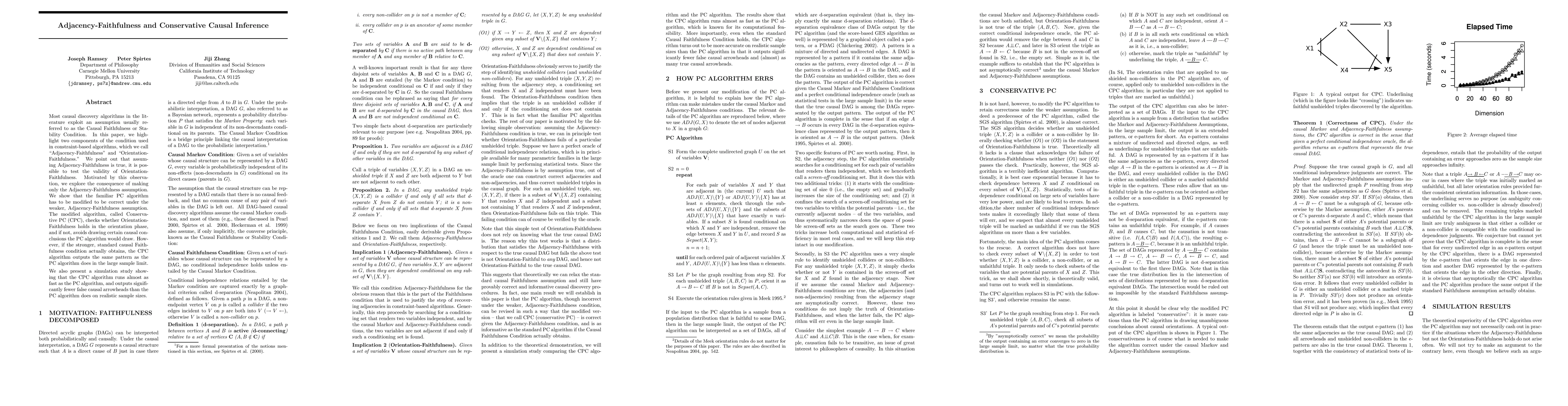 This paper introduces the concepts of "Adjacency-Faithfulness" and "Orientation-Faithfulness" to refine causal inference algorithms. It proposes a modified PC algorithm, called Conservative PC (CPC), which only assumes Adjacency-Faithfulness, thus avoiding false causal conclusions while maintaining performance on realistic sample sizes.