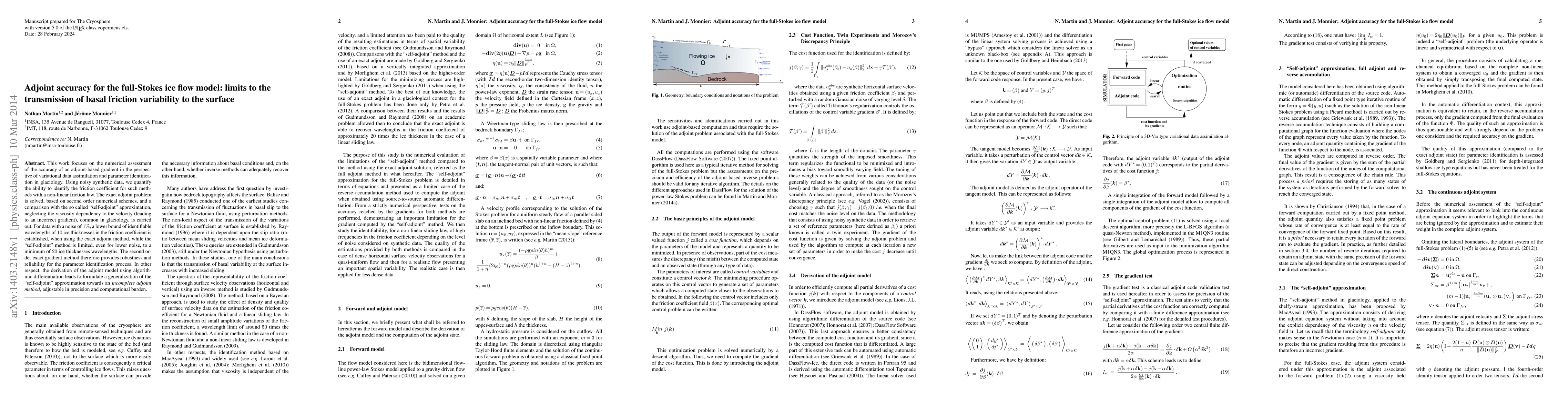 This work focuses on the numerical assessment of the accuracy of an adjoint-based gradient in the perspective of variational data assimilation and parameter identification in glaciology. Using noisy synthetic data, we quantify the ability to identify the friction coefficient for such methods with a non-linear friction law. The exact adjoint problem is solved, based on second order numerical schemes, and a comparison with the so called "self-adjoint" approximation, neglecting the viscosity dependency to the velocity (leading to an incorrect gradient), common in glaciology, is carried out. For data with a noise of $1\%$, a lower bound of identifiable wavelengths of $10$ ice thicknesses in the friction coefficient is established, when using the exact adjoint method, while the "self-adjoint" method is limited, even for lower noise, to a minimum of $20$ ice thicknesses wavelengths. The second order exact gradient method therefore provides robustness and reliability for the parameter identification process. In other respect, the derivation of the adjoint model using algorithmic differentiation leads to formulate a generalization of the "self-adjoint" approximation towards an incomplete adjoint method, adjustable in precision and computational burden.