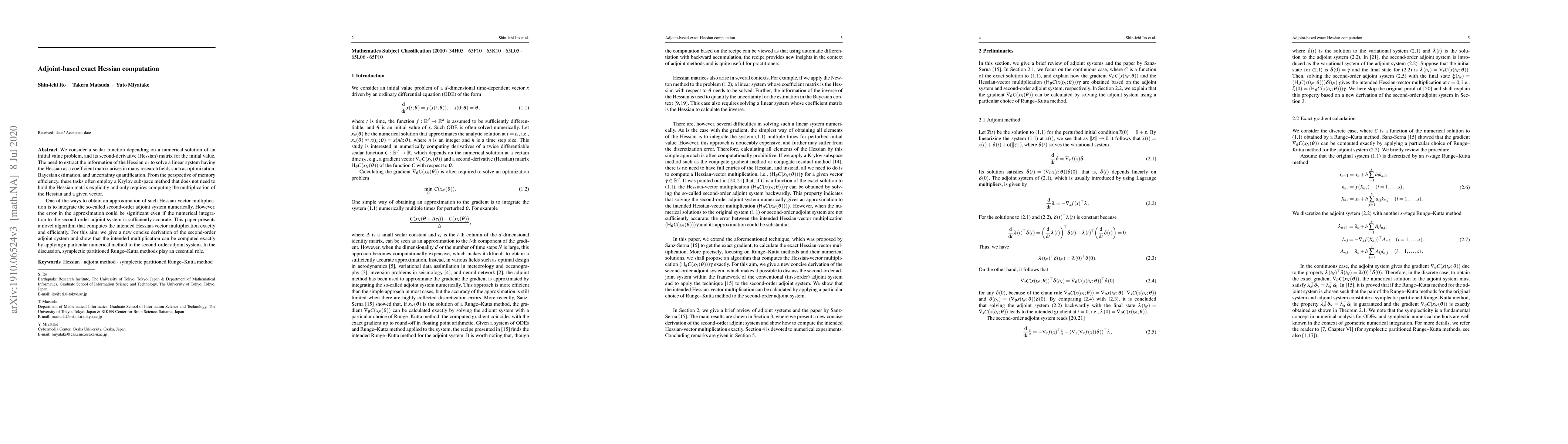 This paper introduces a novel algorithm for exact computation of Hessian-vector multiplications without explicit Hessian matrix storage, addressing significant errors in previous numerical integration methods. It leverages a new derivation of the second-order adjoint system and symplectic partitioned Runge-Kutta methods for efficient and precise results.