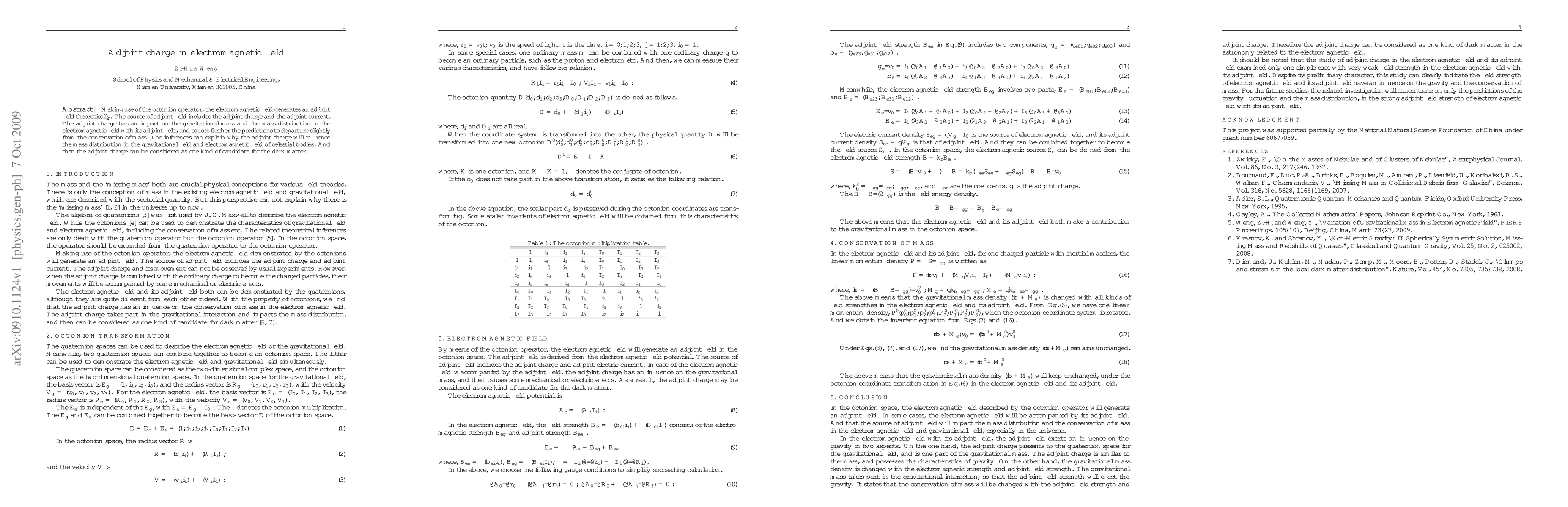 This paper uses the octonion operator to theoretically generate an adjoint field from the electromagnetic field, which includes the adjoint charge and current. The adjoint charge affects gravitational mass and mass distribution, slightly deviating from mass conservation, and may explain the influence of dark matter in celestial bodies' electromagnetic and gravitational fields.