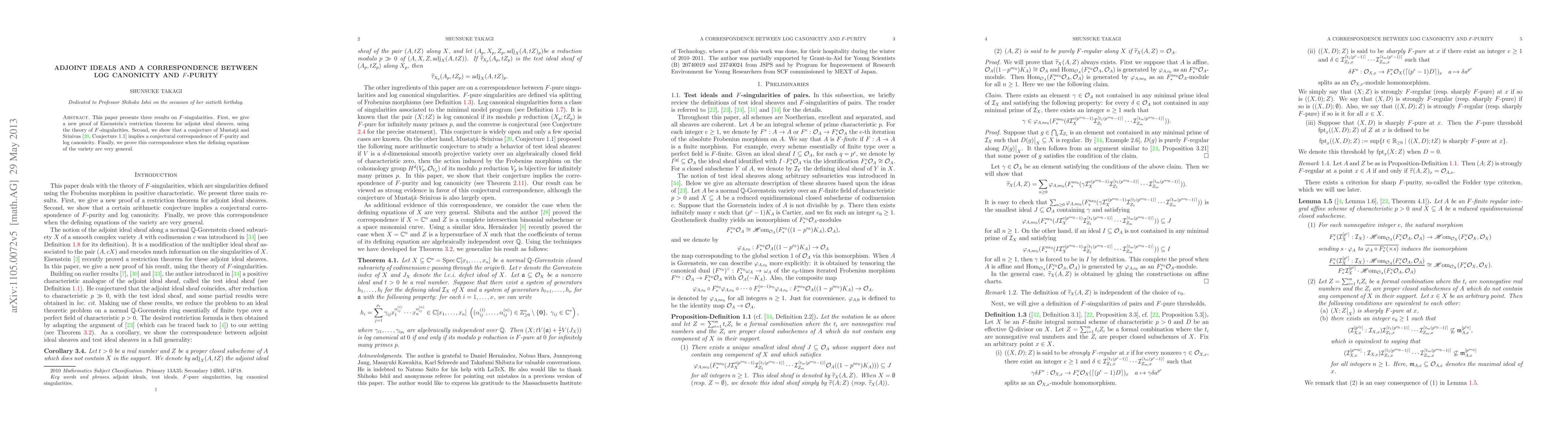 This paper presents three results on F-singularities. First, we give a new proof of Eisenstein's restriction theorem for adjoint ideal sheaves, using the theory of F-singularities. Second, we show that a conjecture of Musta\c{t}\u{a} and Srinivas implies a conjectural correspondence of F-purity and log canonicity. Finally, we prove this correspondence when the defining equations of the variety are very general.