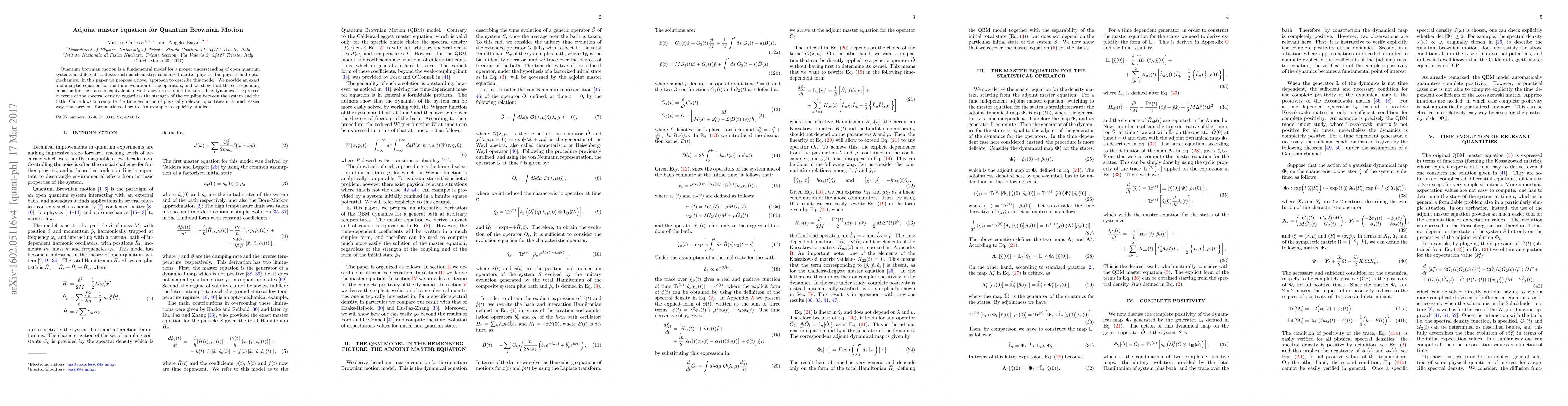 A new approach is proposed to describe Quantum Brownian Motion, providing an exact equation for time evolution in terms of spectral density, making it easier to compute physically relevant quantities.