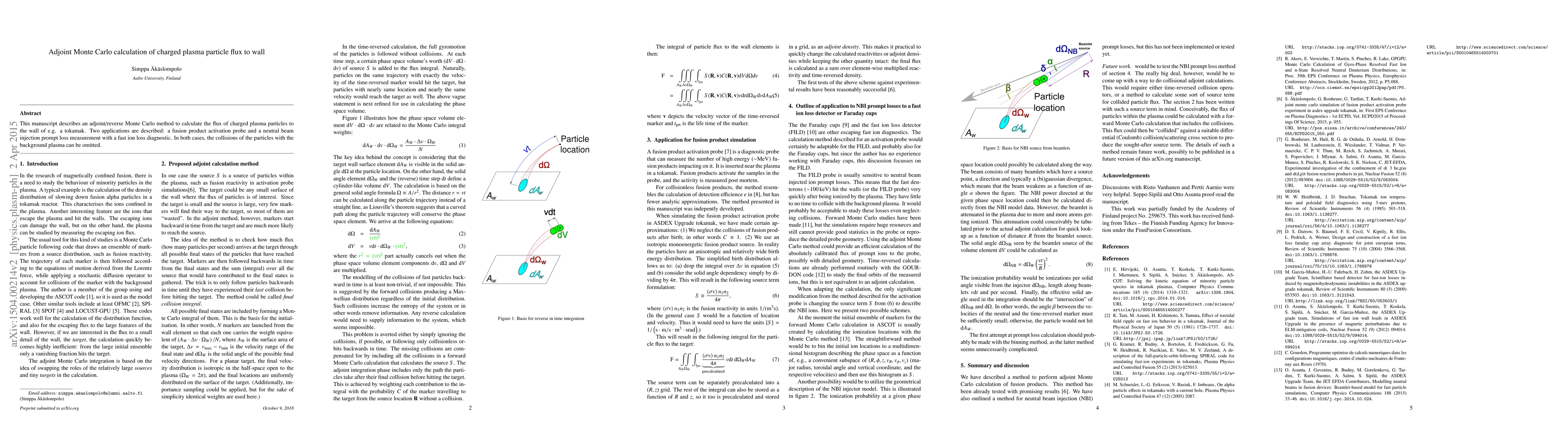 This research presents an adjoint Monte Carlo method to determine charged plasma particle flux to the wall of a tokamak, applied to fusion product activation probes and neutral beam injection diagnostics, with particle collisions with background plasma ignored.