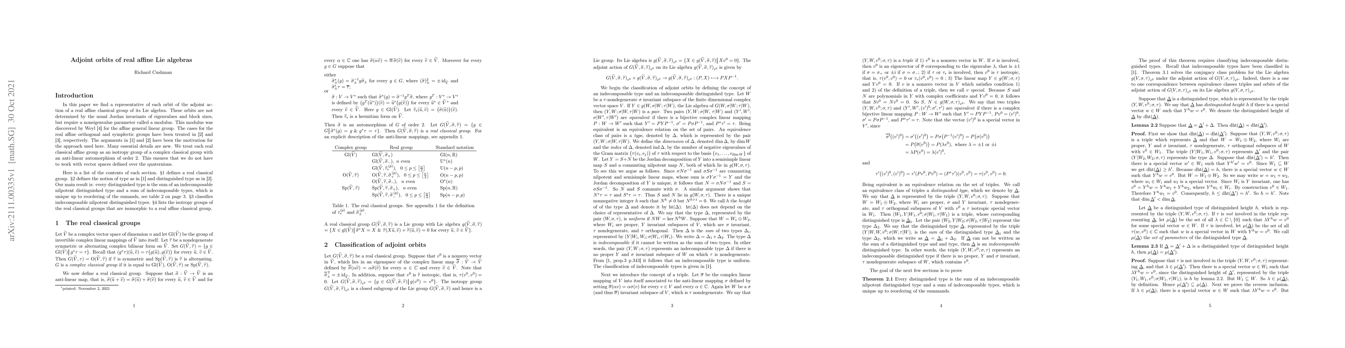 This paper identifies representatives for each orbit under the adjoint action of real affine classical groups on their Lie algebras, showing that these orbits depend on a modulus parameter in addition to Jordan invariants.
