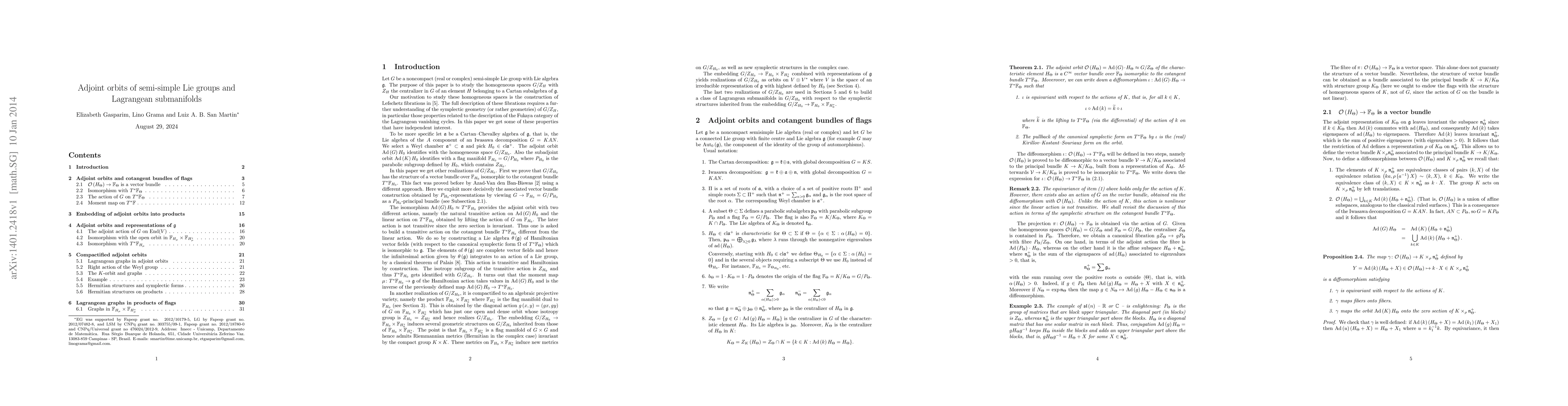 Title: Adjoint orbits of semi-simple Lie groups and Lagrangean submanifolds Summary: This paper explores the symplectic geometry of adjoint orbits in semi-simple Lie groups and identifies a family of Lagrangean submanifolds through various realizations of these orbits.