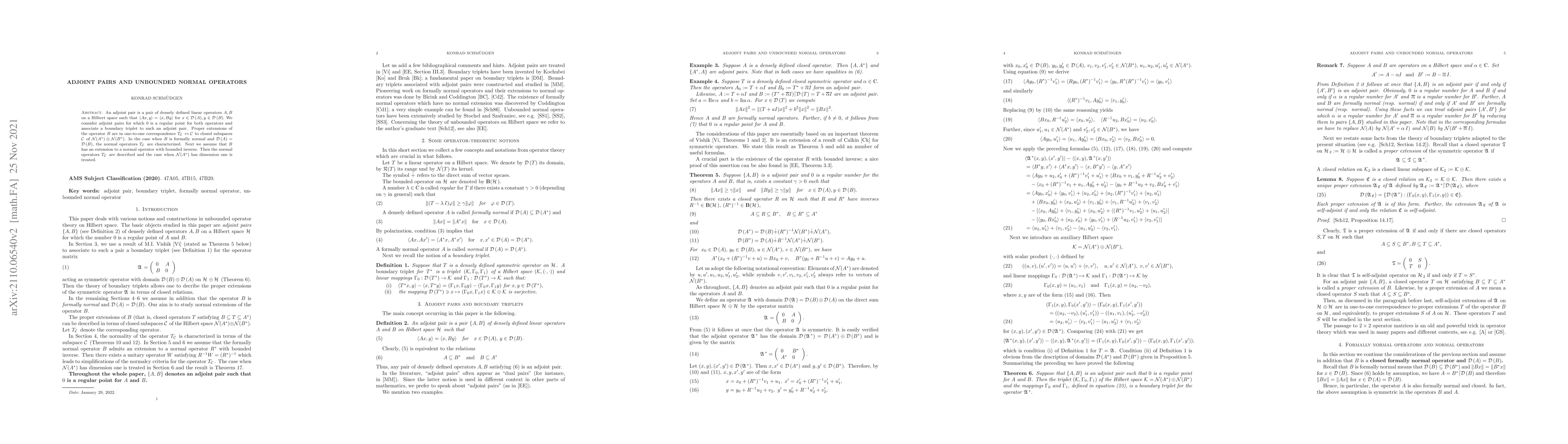 This research explores adjoint pairs of operators in Hilbert spaces, associating boundary triplets to such pairs. It identifies proper extensions of operator B corresponding to closed subspaces of null spaces of A* and B*. When B is formally normal and domains of A and B are equal, normal operators T_C are characterized. If B extends to a normal operator with bounded inverse, T_C are further described, with special attention to when null space of A* has dimension one.