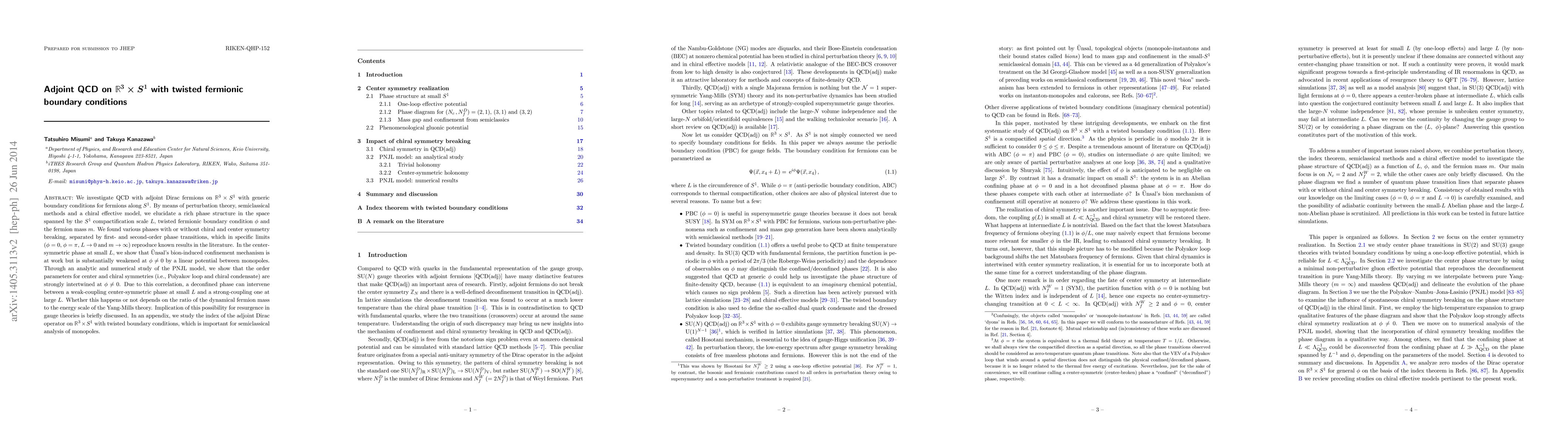We investigate QCD with adjoint Dirac fermions on $\mathbb{R}^3\times S^1$ with generic boundary conditions for fermions along $S^1$. By means of perturbation theory, semiclassical methods and a chiral effective model, we elucidate a rich phase structure in the space spanned by the $S^1$ compactification scale $L$, twisted fermionic boundary condition $\phi$ and the fermion mass $m$. We found various phases with or without chiral and center symmetry breaking, separated by first- and second-order phase transitions, which in specific limits ($\phi=0$, $\phi=\pi$, $L\to 0$ and $m\to \infty$) reproduce known results in the literature. In the center-symmetric phase at small $L$, we show that Unsal's bion-induced confinement mechanism is at work but is substantially weakened at $\phi\ne 0$ by a linear potential between monopoles. Through an analytic and numerical study of the PNJL model, we show that the order parameters for center and chiral symmetries (i.e., Polyakov loop and chiral condensate) are strongly intertwined at $\phi\ne 0$. Due to this correlation, a deconfined phase can intervene between a weak-coupling center-symmetric phase at small $L$ and a strong-coupling one at large $L$. Whether this happens or not depends on the ratio of the dynamical fermion mass to the energy scale of the Yang-Mills theory. Implication of this possibility for resurgence in gauge theories is briefly discussed. In an appendix, we study the index of the adjoint Dirac operator on $\mathbb{R}^3\times S^1$ with twisted boundary conditions, which is important for semiclassical analysis of monopoles.