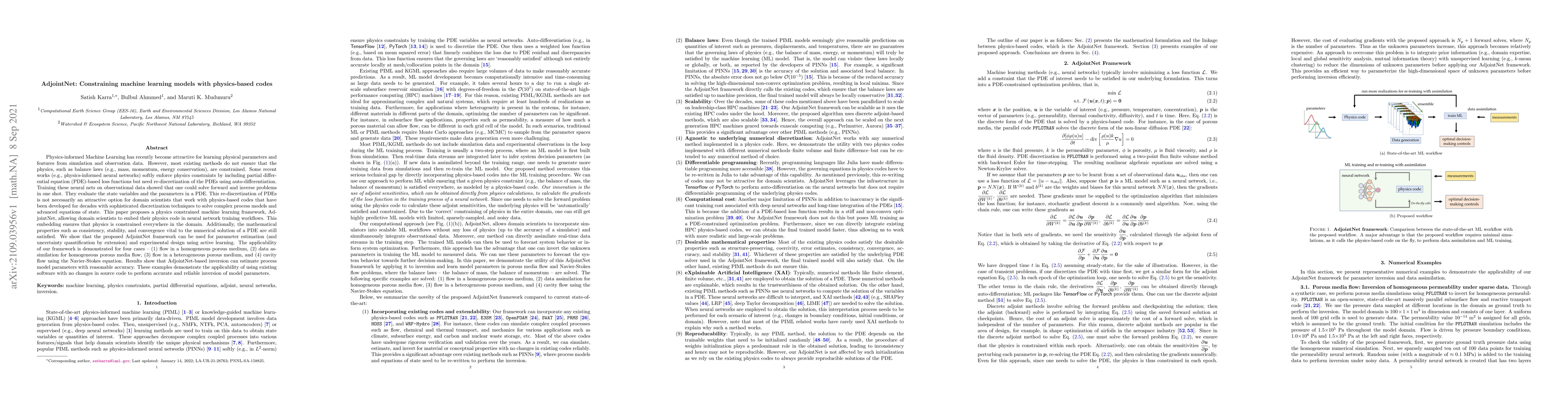 A new machine learning framework called AdjointNet embeds physics constraints into neural networks, allowing domain scientists to train models on existing physics-based codes without re-discretization, for accurate parameter estimation and experimental design.