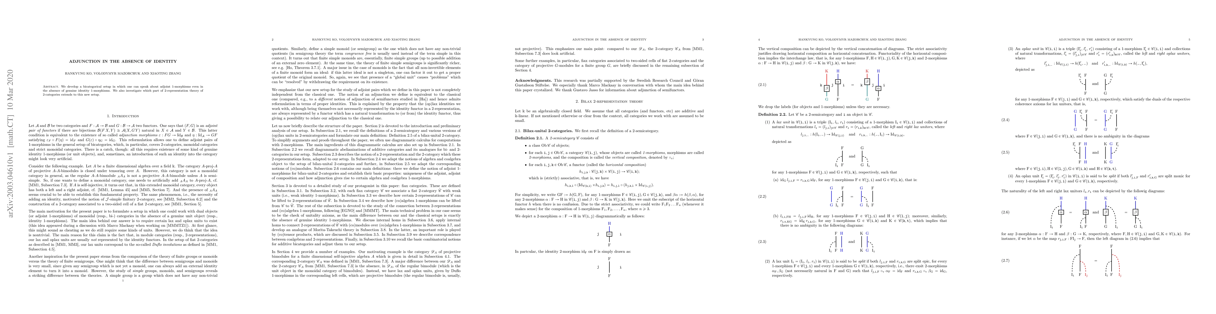 We develop a bicategorical setup in which one can speak about adjoint 1-morphisms even in the absence of genuine identity 1-morphisms. We also investigate which part of 2-representation theory of 2-categories extends to this new setup.