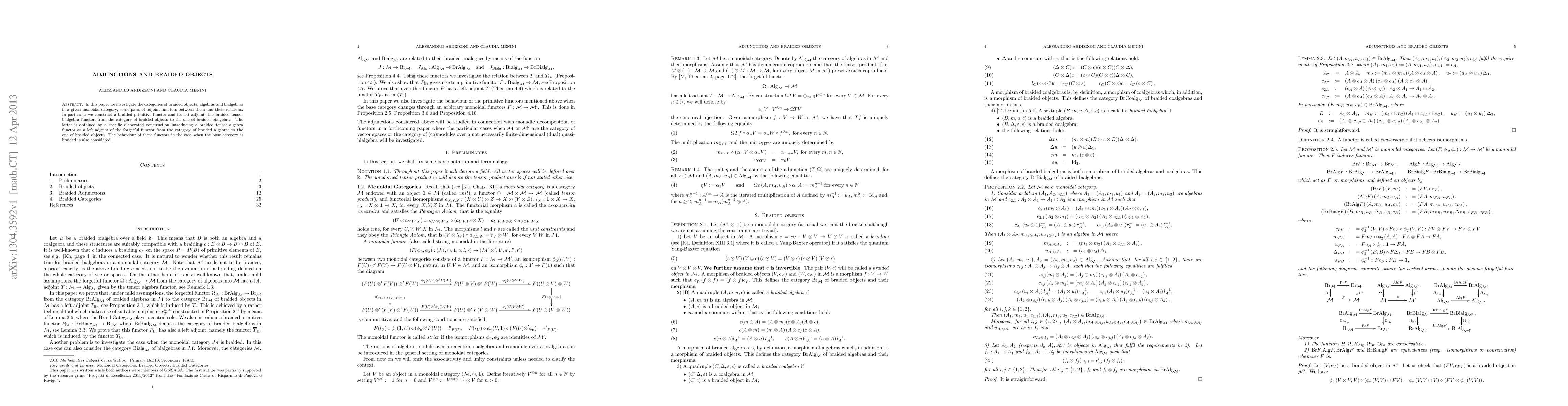 This paper explores the categories of braided objects, algebras, and bialgebras within a monoidal category, and examines adjoint functors and their relationships. It constructs a braided primitive functor and its left adjoint, the braided tensor bialgebra functor, along with a braided tensor algebra functor, and discusses their behavior in braided base categories.
