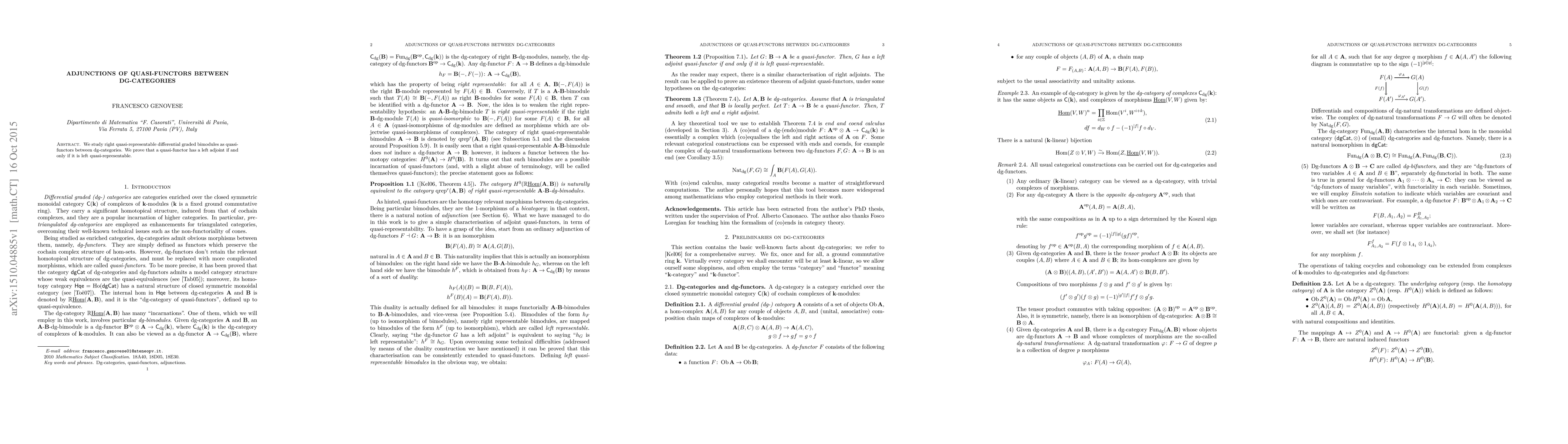 This work is novel because it establishes a connection between quasi-functors and adjunctions in dg-categories, providing new insights into the properties of these objects
