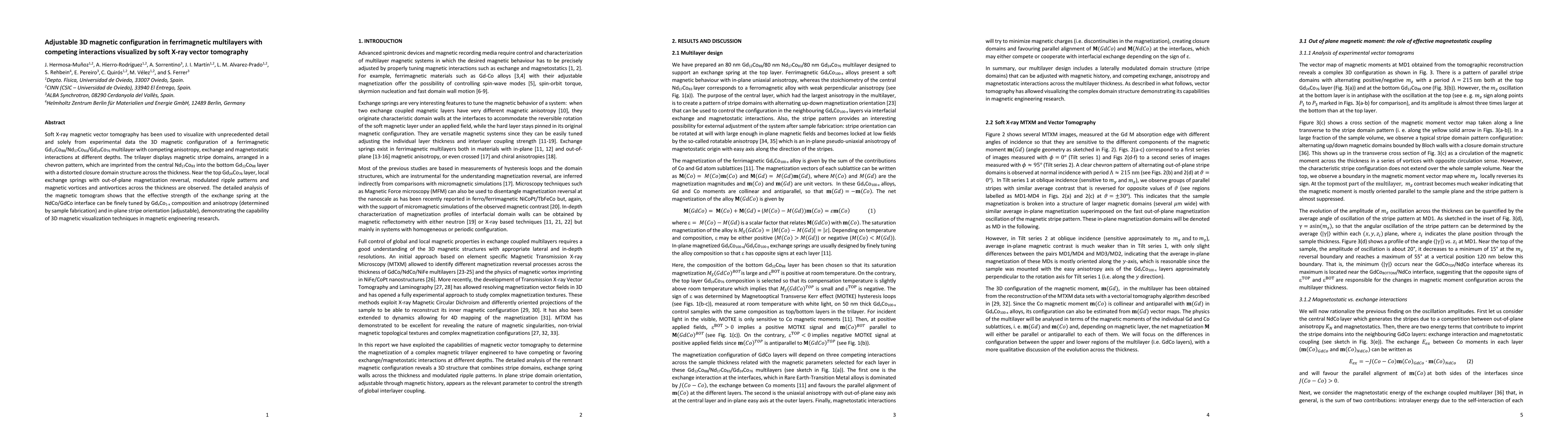 Researchers used soft X-ray vector tomography to visualize the 3D magnetic configuration of a ferrimagnetic multilayer with competing interactions. They found that the effective strength of an exchange spring can be tuned by adjusting composition and stripe orientation.