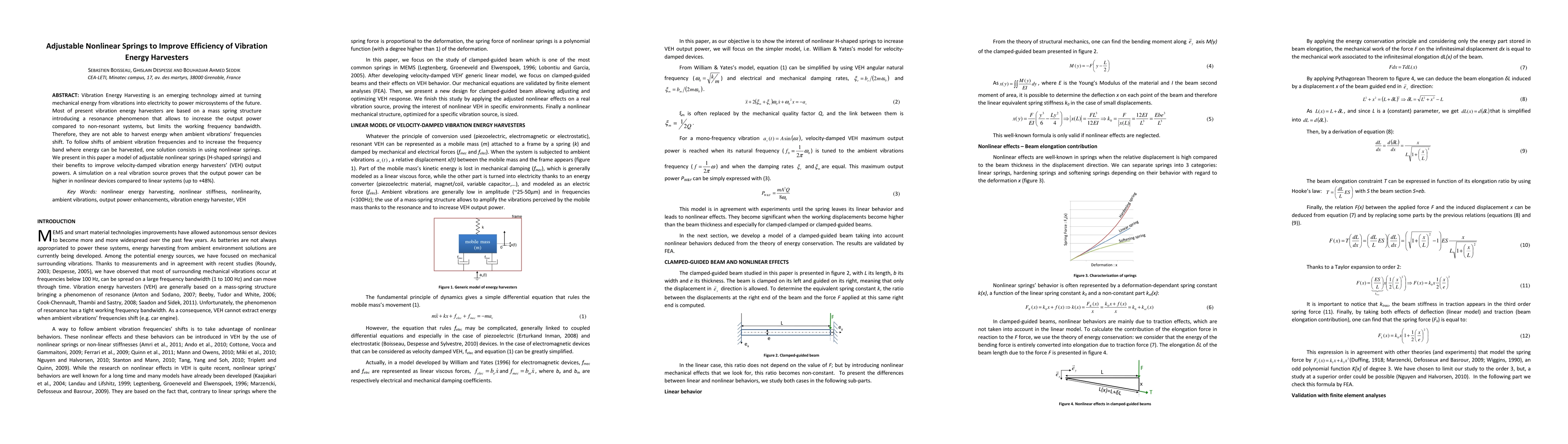 Researchers developed adjustable nonlinear springs to improve vibration energy harvesting efficiency by up to 48% compared to traditional linear systems.
