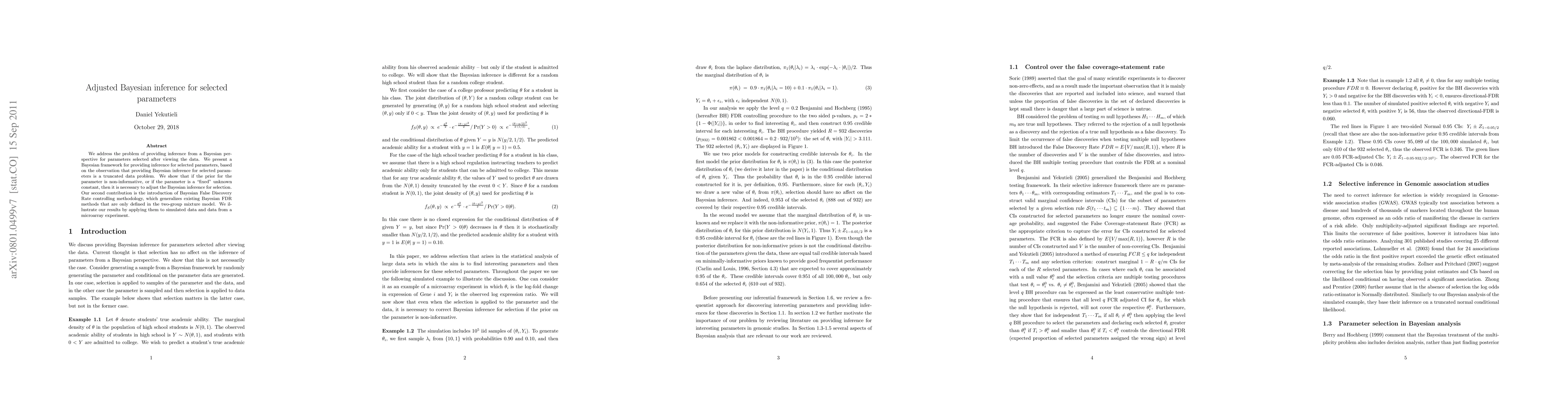 This paper proposes a Bayesian framework for inferring selected parameters post-data analysis, addressing the need for adjustment when priors are non-informative or parameters are unknown constants. It introduces a Bayesian False Discovery Rate controlling methodology, extending existing methods, and demonstrates its application through simulations and a microarray experiment.