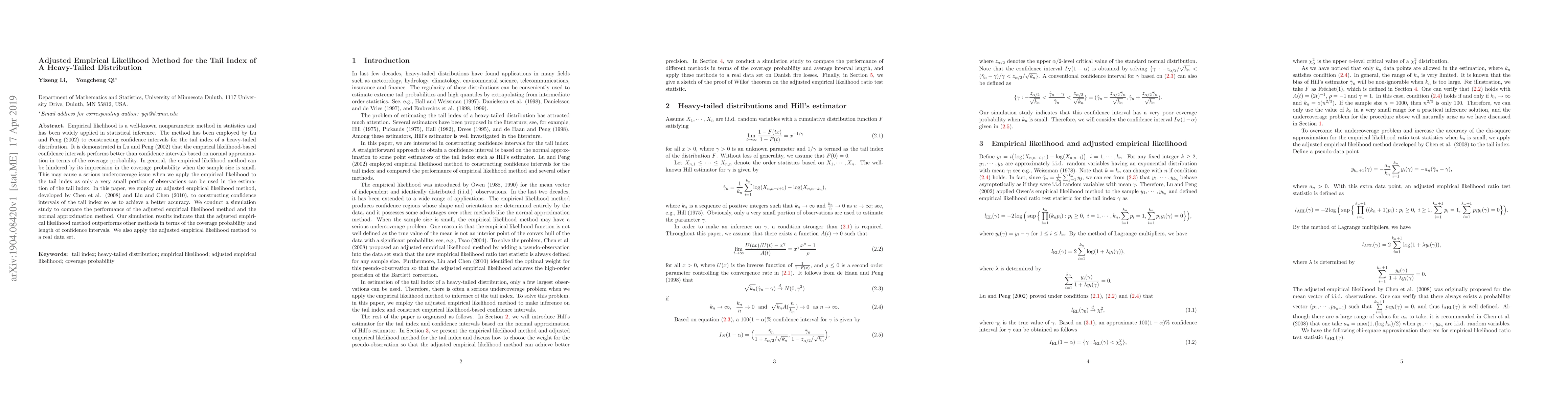 This paper proposes an adjusted empirical likelihood method to construct confidence intervals for the tail index of a heavy-tailed distribution, outperforming normal approximation methods in terms of coverage probability and interval length.
