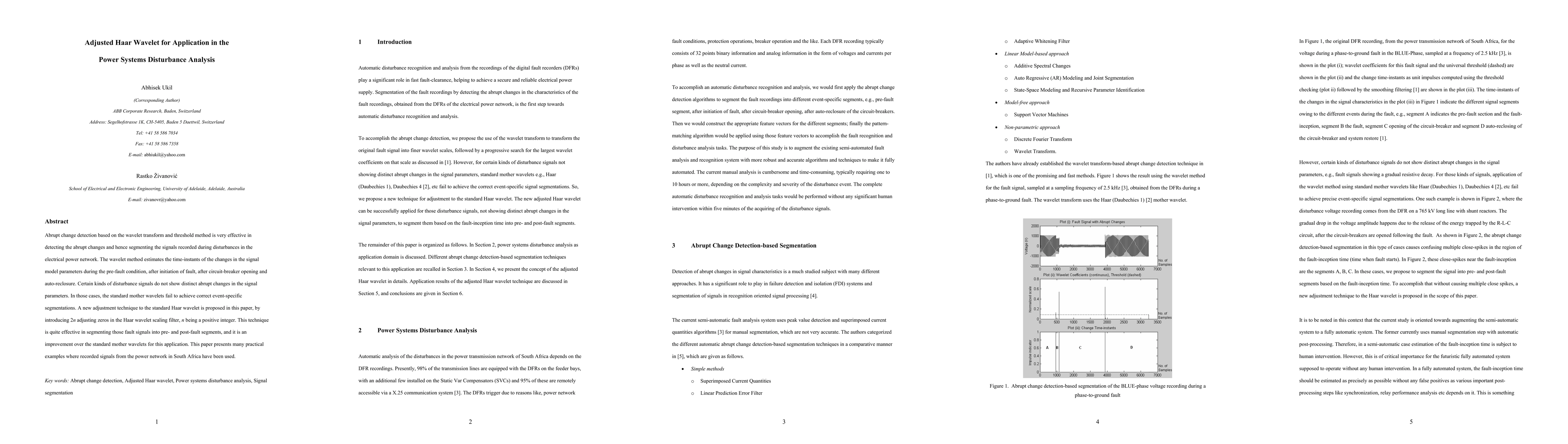 This paper proposes an adjusted Haar wavelet technique by introducing 2n adjusting zeros to segment fault signals in power systems, improving upon standard wavelets for detecting disturbances. Practical examples from South Africa's power network demonstrate the method's effectiveness.
