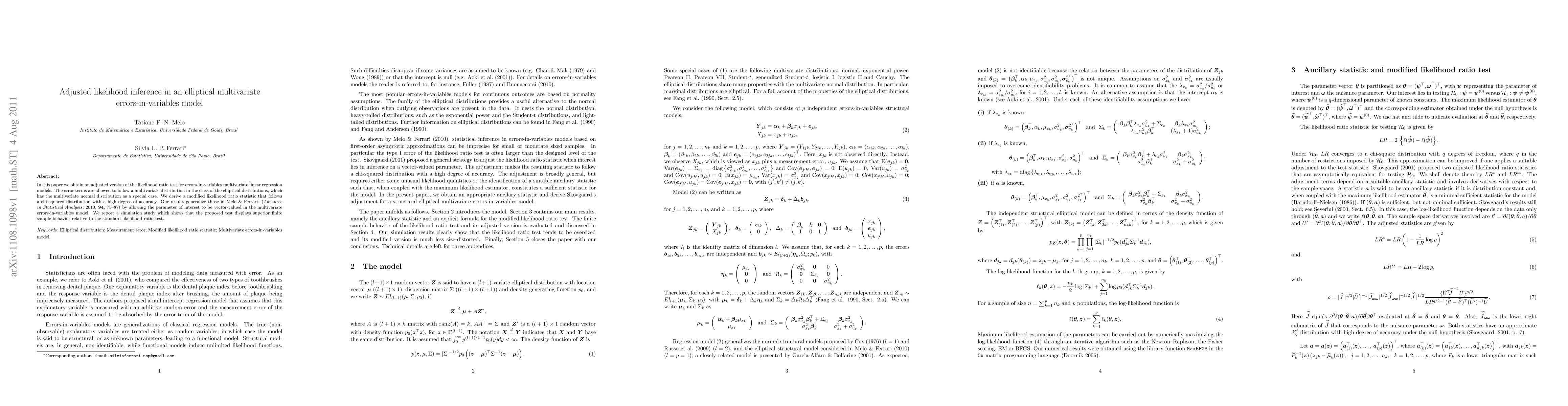 This paper develops an adjusted likelihood ratio test for multivariate errors-in-variables models where error terms follow elliptical distributions. The proposed test shows superior performance in simulations compared to the standard likelihood ratio test.
