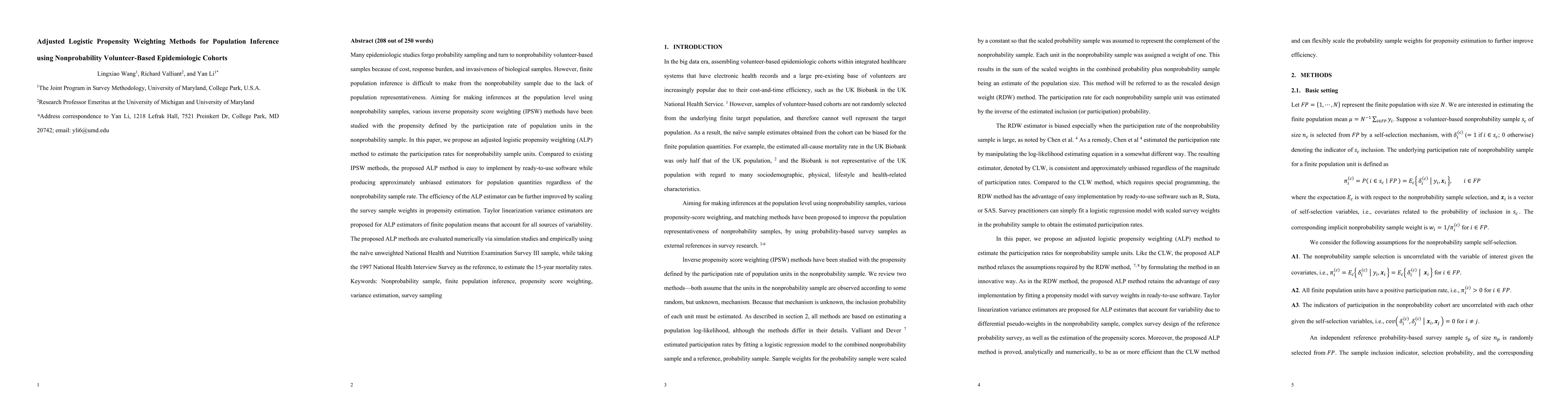 Researchers propose an adjusted logistic propensity weighting method to estimate population quantities from nonprobability samples, offering a more accurate and efficient approach than existing methods.