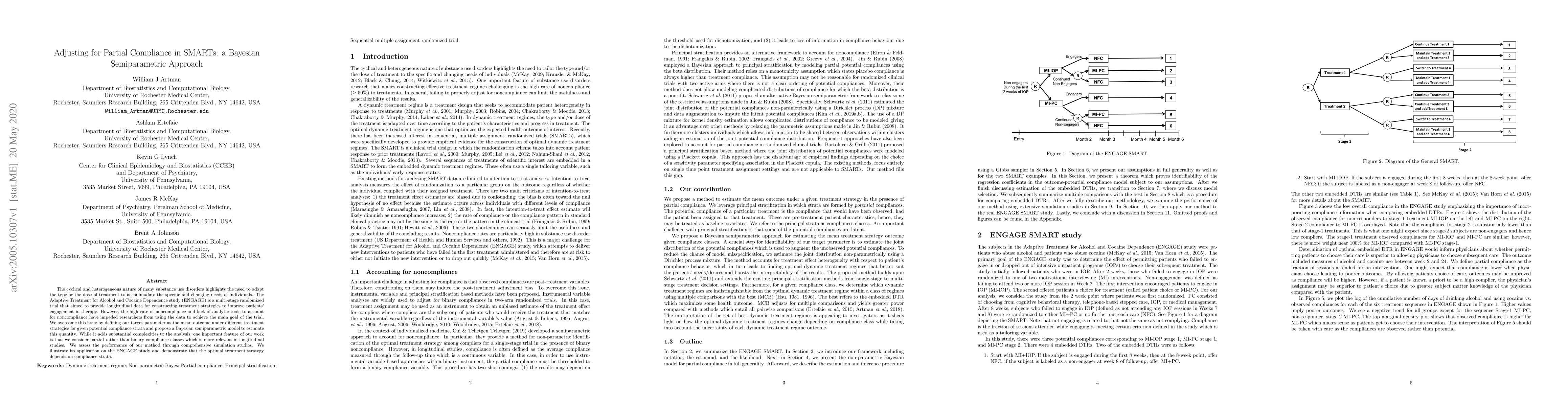 The cyclical and heterogeneous nature of many substance use disorders highlights the need to adapt the type or the dose of treatment to accommodate the specific and changing needs of individuals. The Adaptive Treatment for Alcohol and Cocaine Dependence study (ENGAGE) is a multi-stage randomized trial that aimed to provide longitudinal data for constructing treatment strategies to improve patients' engagement in therapy. However, the high rate of noncompliance and lack of analytic tools to account for noncompliance have impeded researchers from using the data to achieve the main goal of the trial. We overcome this issue by defining our target parameter as the mean outcome under different treatment strategies for given potential compliance strata and propose a Bayesian semiparametric model to estimate this quantity. While it adds substantial complexities to the analysis, one important feature of our work is that we consider partial rather than binary compliance classes which is more relevant in longitudinal studies. We assess the performance of our method through comprehensive simulation studies. We illustrate its application on the ENGAGE study and demonstrate that the optimal treatment strategy depends on compliance strata.