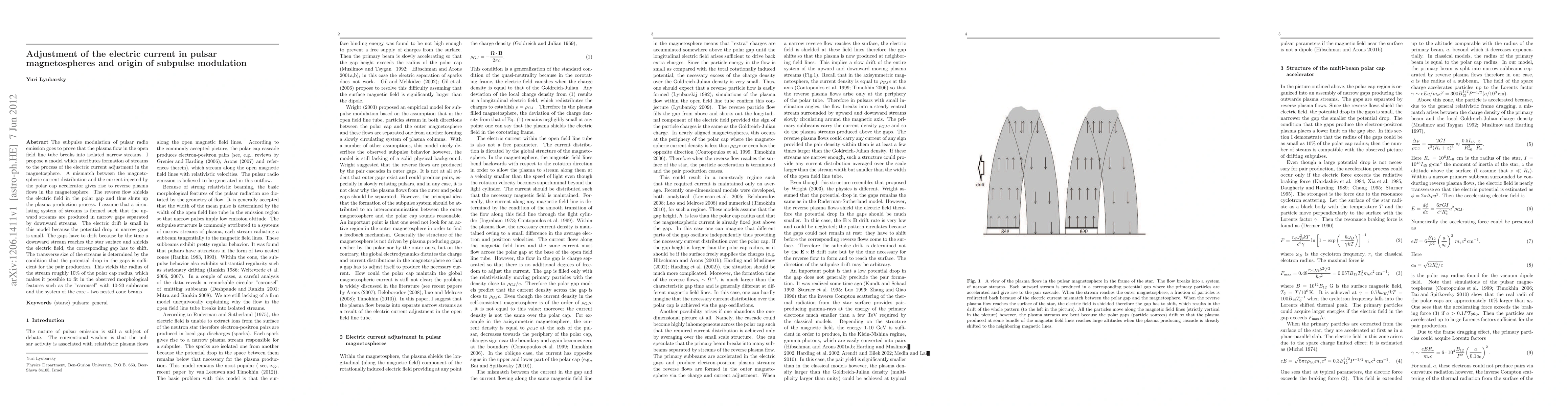 The subpulse modulation of pulsar radio emission goes to prove that the plasma flow in the open field line tube breaks into isolated narrow streams. I propose a model which attributes formation of streams to the process of the electric current adjustment in the magnetosphere. A mismatch between the magnetospheric current distribution and the current injected by the polar cap accelerator gives rise to reverse plasma flows in the magnetosphere. The reverse flow shields the electric field in the polar gap and thus shuts up the plasma production process. I assume that a circulating system of streams is formed such that the upward streams are produced in narrow gaps separated by downward streams. The electric drift is small in this model because the potential drop in narrow gaps is small. The gaps have to drift because by the time a downward stream reaches the star surface and shields the electric field, the corresponding gap has to shift. The transverse size of the streams is determined by the condition that the potential drop in the gaps is sufficient for the pair production. This yields the radius of the stream roughly 10% of the polar cap radius, which makes it possible to fit in the observed morphological features such as the "carousel" with 10-20 subbeams and the system of the core - two nested cone beams.