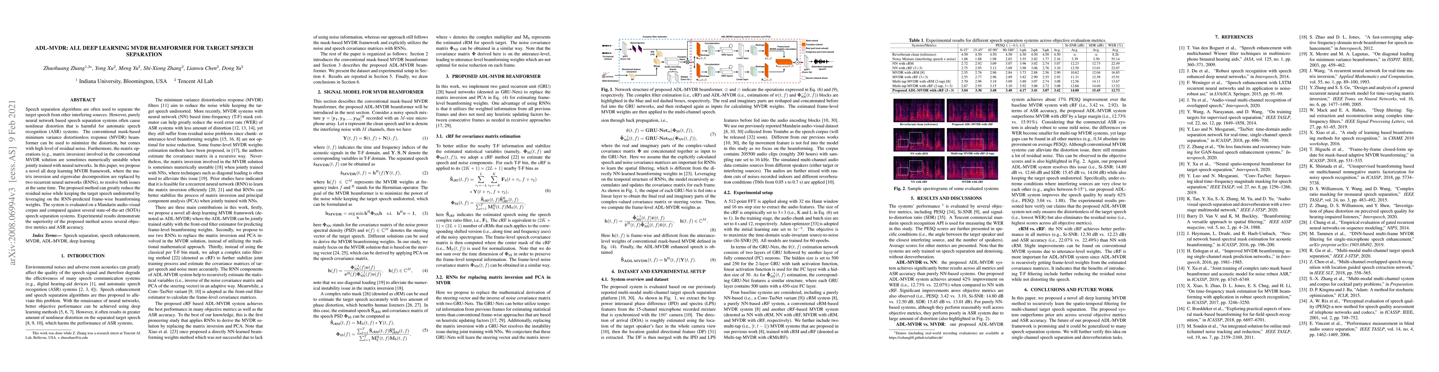 This paper proposes an all deep learning MVDR beamformer to separate target speech from interfering sources, replacing matrix inversion and eigenvalue decomposition with recurrent neural networks to reduce residual noise and distortion, achieving superior performance compared to state-of-the-art methods in both objective metrics and automatic speech recognition accuracy.
