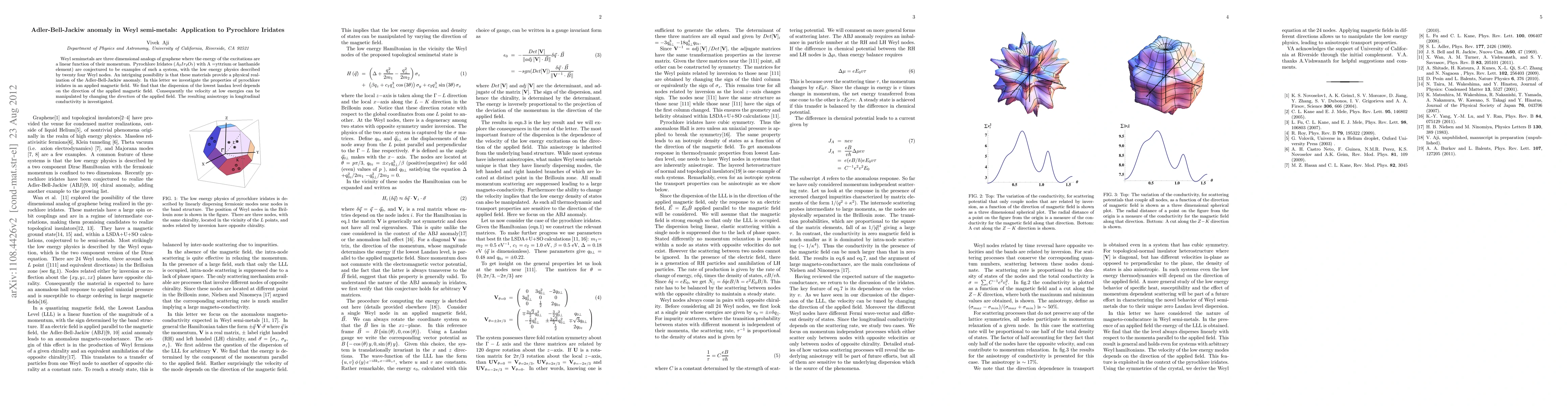 This paper investigates the Adler-Bell-Jackiw anomaly in Weyl semimetals, focusing on pyrochlore iridates. The study finds that the magneto-conductivity in pyrochlore iridates is highly anisotropic due to the dependence of the lowest Landau level's dispersion on the magnetic field direction, providing a signature of the semi-metallic state.