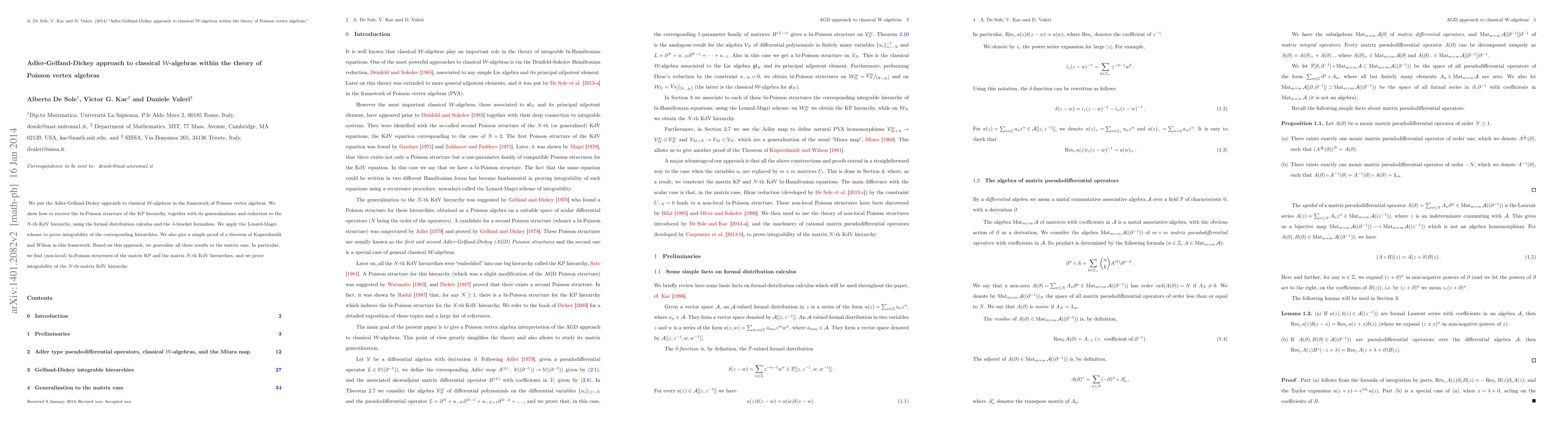We put the Adler-Gelfand-Dickey approach to classical W-algebras in the framework of Poisson vertex algebras. We show how to recover the bi-Poisson structure of the KP hierarchy, together with its generalizations and reduction to the N-th KdV hierarchy, using the formal distribution calculus and the lambda-bracket formalism. We apply the Lenard-Magri scheme to prove integrability of the corresponding hierarchies. We also give a simple proof of a theorem of Kupershmidt and Wilson in this framework. Based on this approach, we generalize all these results to the matrix case. In particular, we find (non-local) bi-Poisson structures of the matrix KP and the matrix N-th KdV hierarchies, and we prove integrability of the N-th matrix KdV hierarchy.