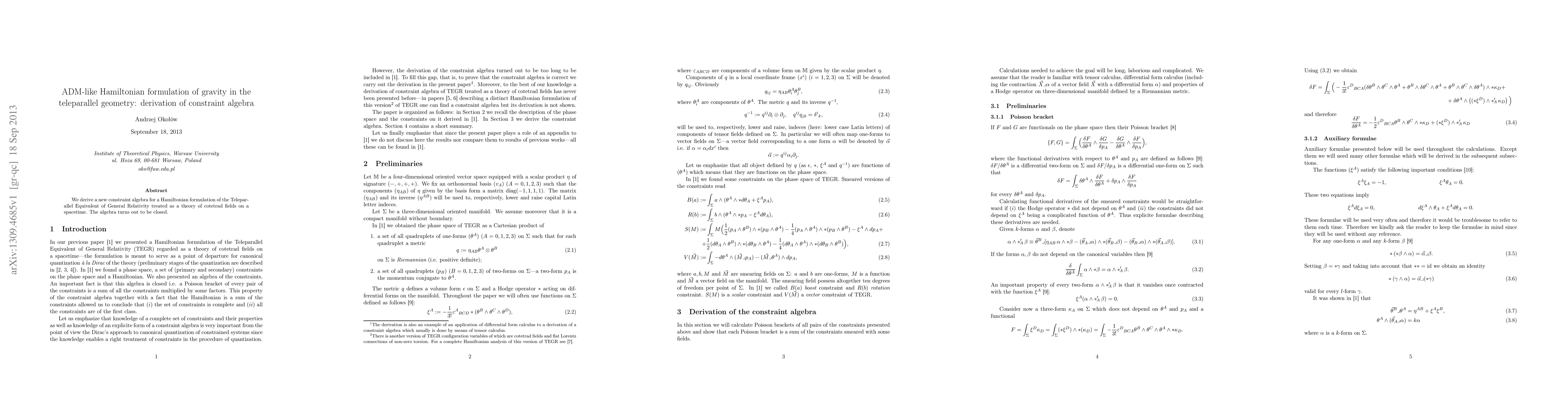 This paper presents a new constraint algebra for a Hamiltonian formulation of teleparallel gravity, demonstrating its closure and providing a rigorous framework for the ADM-like approach in teleparallel geometry.