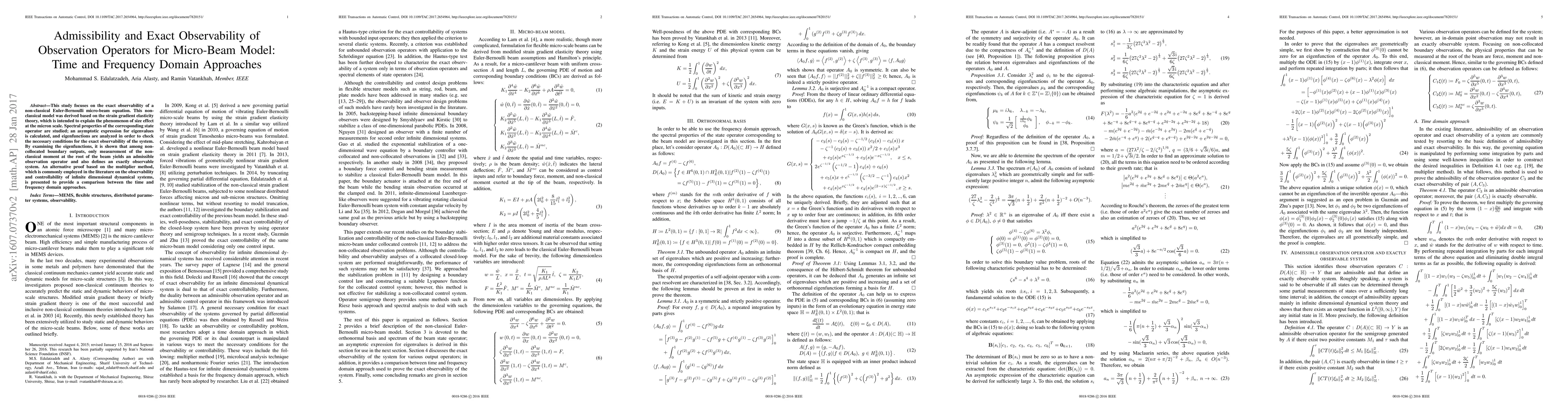Researchers studied the exact observability of a non-classical micro-beam equation using time and frequency domain approaches. They found that only measuring the non-classical moment at the beam's root is admissible and exactly observable.