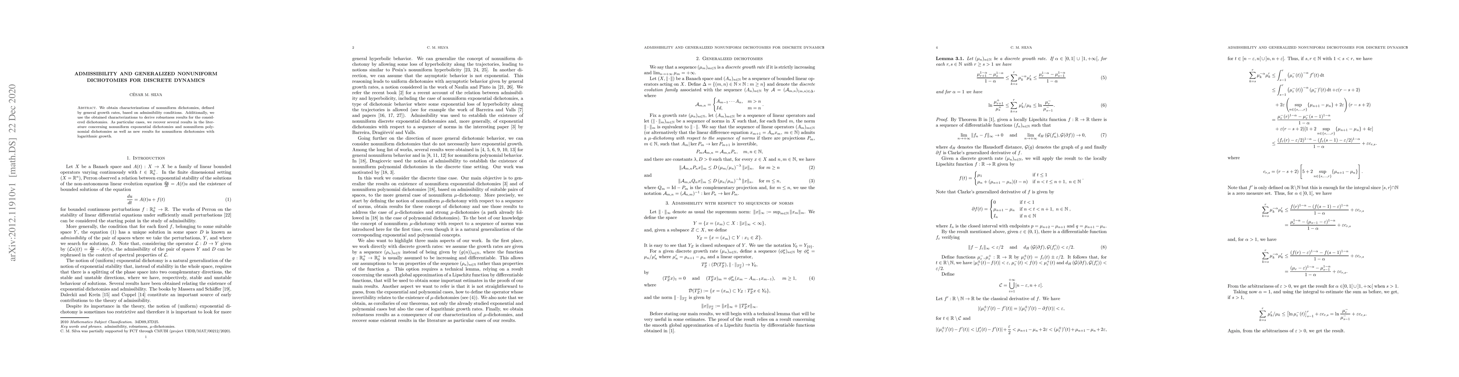 Summary: This paper characterizes nonuniform dichotomies using admissibility conditions and derives robustness results for these dichotomies, recovering existing results for exponential and polynomial dichotomies while introducing new findings for logarithmic growth dichotomies.