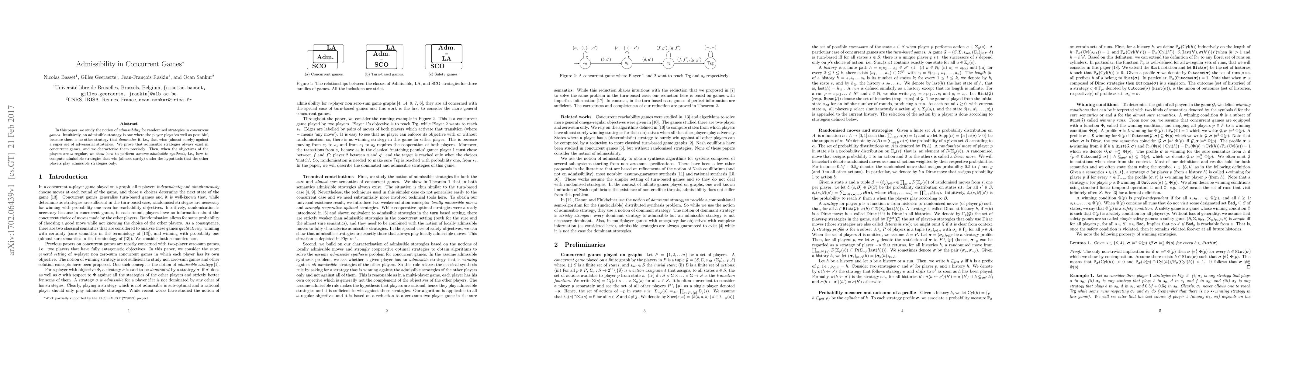 The paper introduces a precise characterisation of admissible strategies in concurrent games and demonstrates how to compute assume-admissible strategies for omega-regular objectives, bridging the gap between strategy admissibility and synthesis.