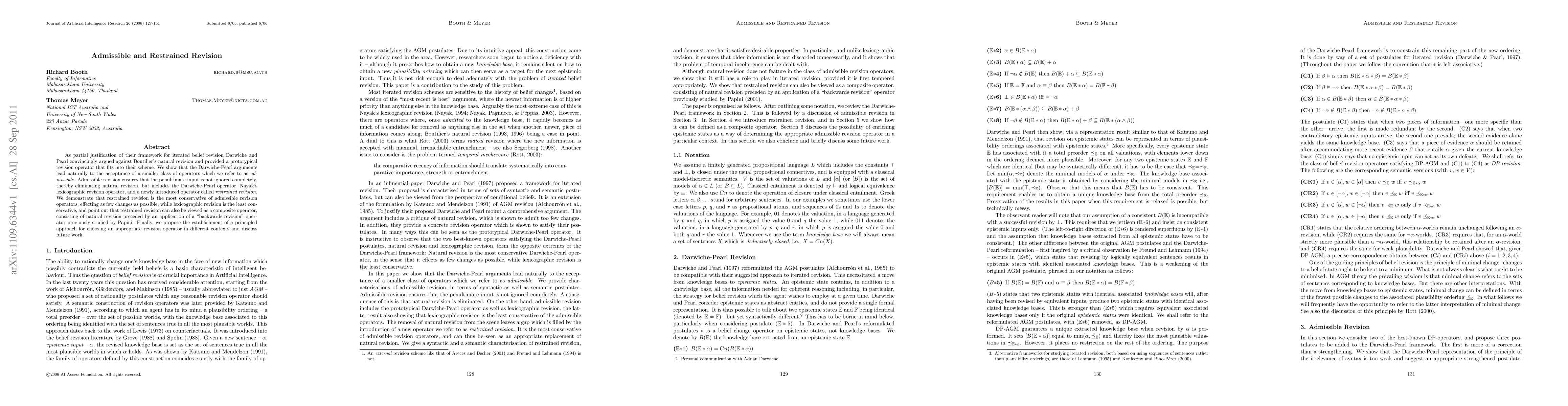 This paper argues that Darwiche-Pearl's framework for iterated belief revision leads to a smaller class of admissible revision operators, which ensure the penultimate input is not completely ignored. It introduces restrained revision as the most conservative operator, contrasting it with Nayak's lexicographic revision, and proposes a principled method for selecting appropriate revision operators in various contexts.
