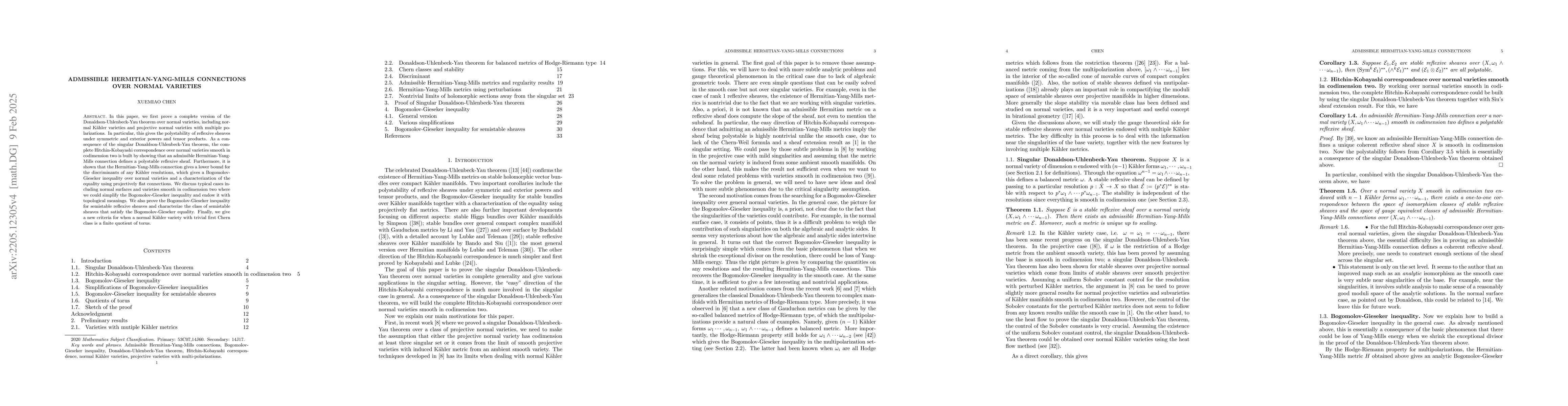 In this paper, we first prove a complete version of the Donaldson-Uhlenbeck-Yau theorem over normal varieties, including normal Kaehler varieties and projective normal varieties with multiple polarizations. In particular, this gives the polystability of reflexive sheaves under symmetric and exterior powers and tensor products. As a consequence of the singular Donaldson-Uhlenbeck-Yau theorem, the complete Hitchin-Kobayashi correspondence over normal varieties smooth in codimension two is built by showing that an admissible Hermitian-Yang- Mills connection defines a polystable reflexive sheaf. Furthermore, it is shown that the Hermitian-Yang-Mills connection gives a lower bound for the discriminants of any Kaehler resolutions, which gives a Bogomolov-Gieseker inequality over normal varieties and a characterization of the equality using projectively flat connections. We discuss typical cases including normal surfaces and varieties smooth in codimension two where we could simplify the Bogomolov-Gieseker inequality and endow it with topological meanings. We also prove the Bogomolov-Gieseker inequality for semistable reflexive sheaves and characterize the class of semistable sheaves that satisfy the Bogomolov-Gieseker equality. Finally, as another application, we give a new criteria for when a normal Kaehler variety with trivial first Chern class is a finite quotient of torus.
