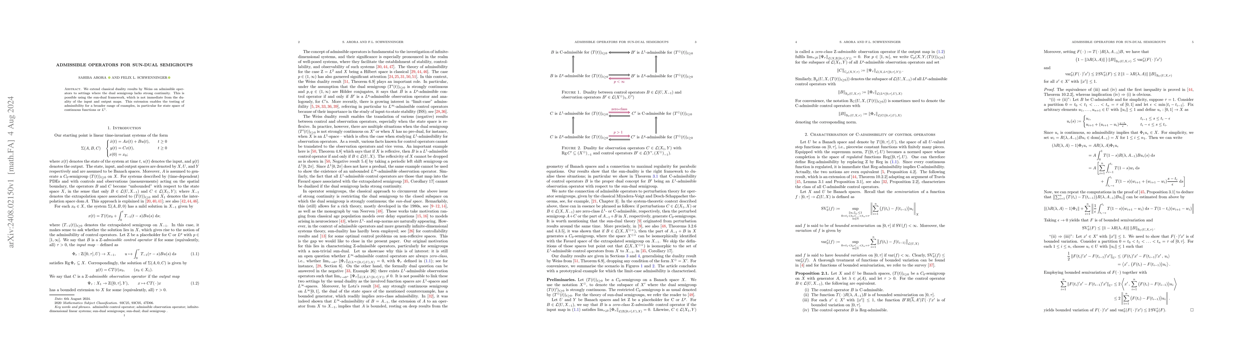 This paper extends Weiss's classical results on admissible operators to cases where dual semigroups lack strong continuity, utilizing the sun-dual framework. This approach broadens the scope for testing admissibility, especially in state spaces of continuous functions or $L^1$.