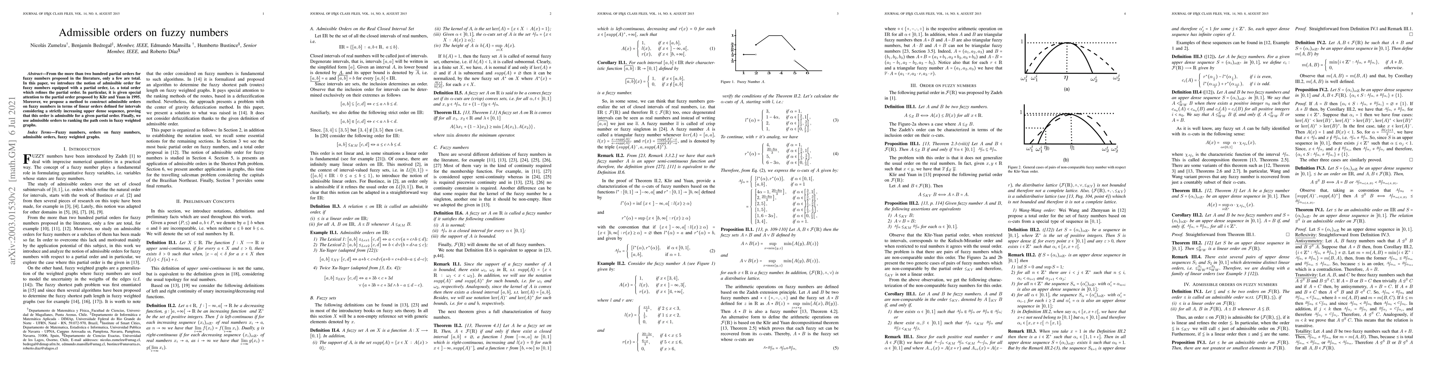 From the more than two hundred partial orders for fuzzy numbers proposed in the literature, only a few are total. In this paper, we introduce the notion of admissible order for fuzzy numbers equipped with a partial order, i.e. a total order which refines the partial order. In particular, it is given special attention to the partial order proposed by Klir and Yuan in 1995. Moreover, we propose a method to construct admissible orders on fuzzy numbers in terms of linear orders defined for intervals considering a strictly increasing upper dense sequence, proving that this order is admissible for a given partial order. Finally, we use admissible orders to ranking the path costs in fuzzy weighted graphs.