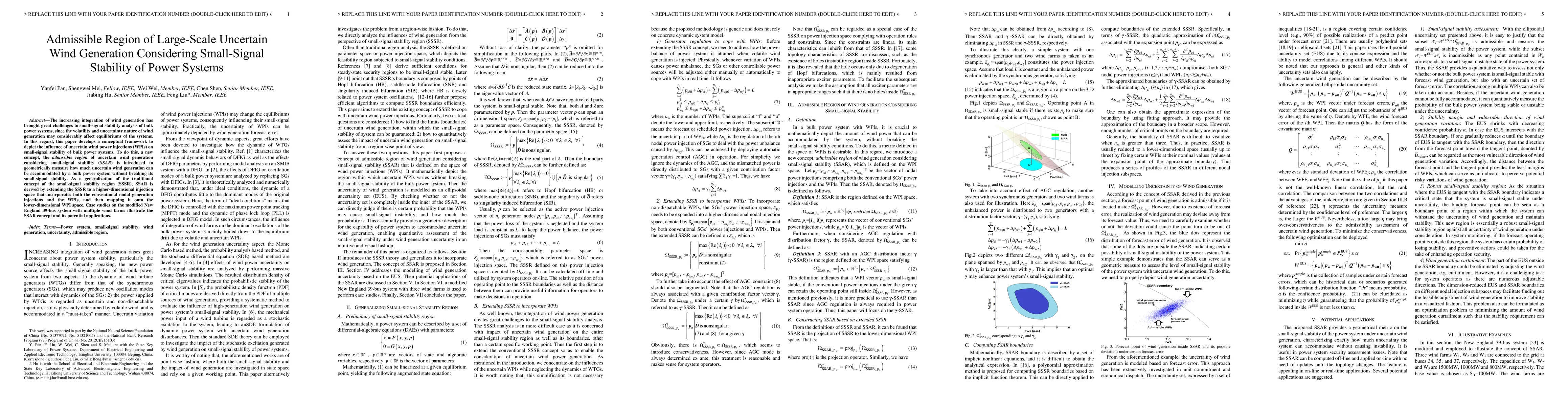 This paper introduces the admissible region of uncertain wind generation considering small-signal stability (SSAR) to measure the impact of wind power injections on power system stability. It extends the traditional small-signal stability region to accommodate wind generation and demonstrates its application through case studies on the New England 39-bus system.