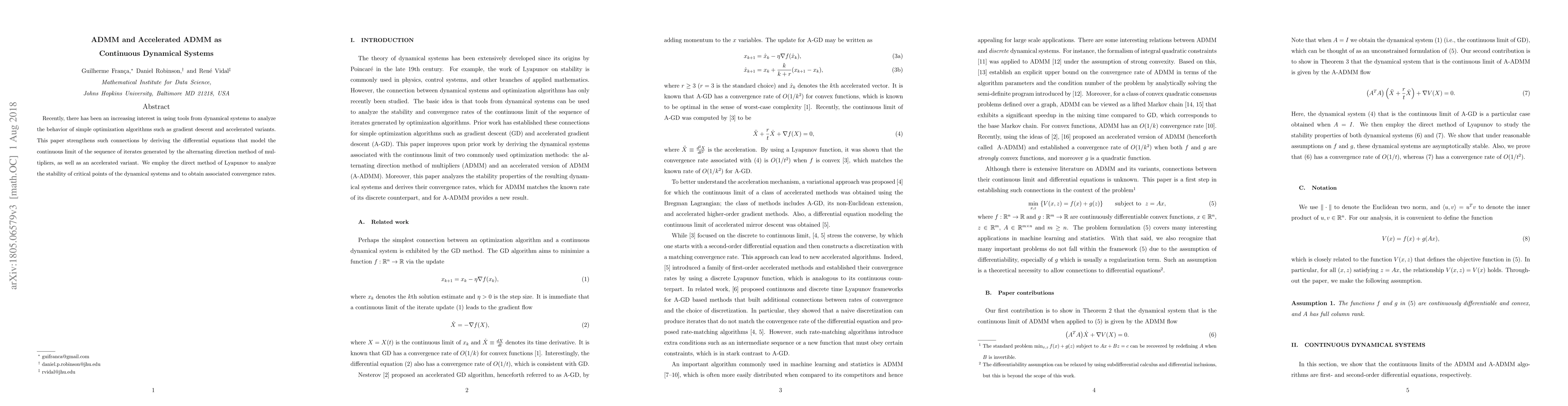 This paper derives differential equations modeling the continuous limit of the alternating direction method of multipliers (ADMM) and its accelerated variant, analyzing their stability and convergence rates using Lyapunov methods. The study bridges optimization algorithms and dynamical systems theory.