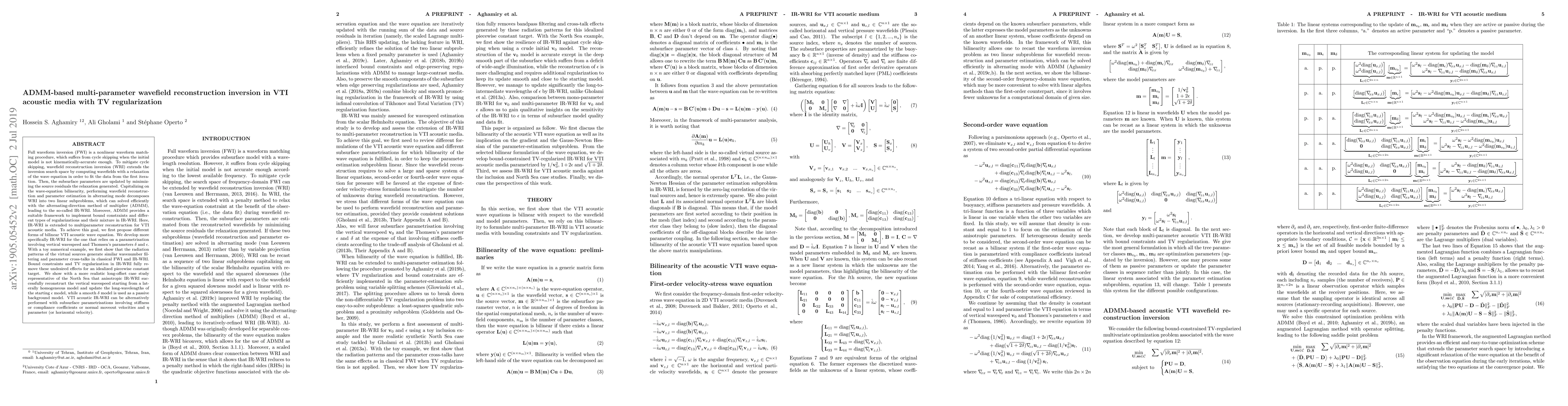 This paper proposes an ADMM-based multi-parameter wavefield reconstruction inversion (IR-WRI) method for anisotropic VTI acoustic media, utilizing TV regularization to mitigate cycle skipping and improve subsurface parameter estimation. The method successfully reconstructs vertical wavespeed and updates long-wavelength parameters in a realistic North Sea case study.