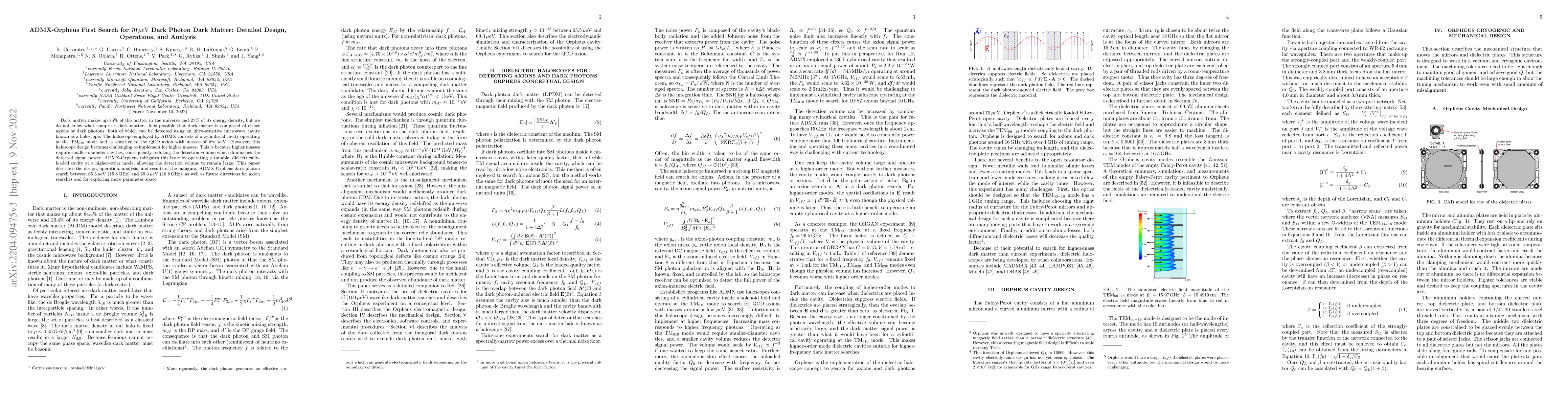 The ADMX-Orpheus experiment utilizes a tunable dielectrically-loaded cavity to detect 70 $\mu$eV dark photon dark matter, overcoming limitations of previous designs by maintaining a large detection volume. The inaugural search yielded no detections but set constraints on dark photon properties and paves the way for future axion and dark photon searches.