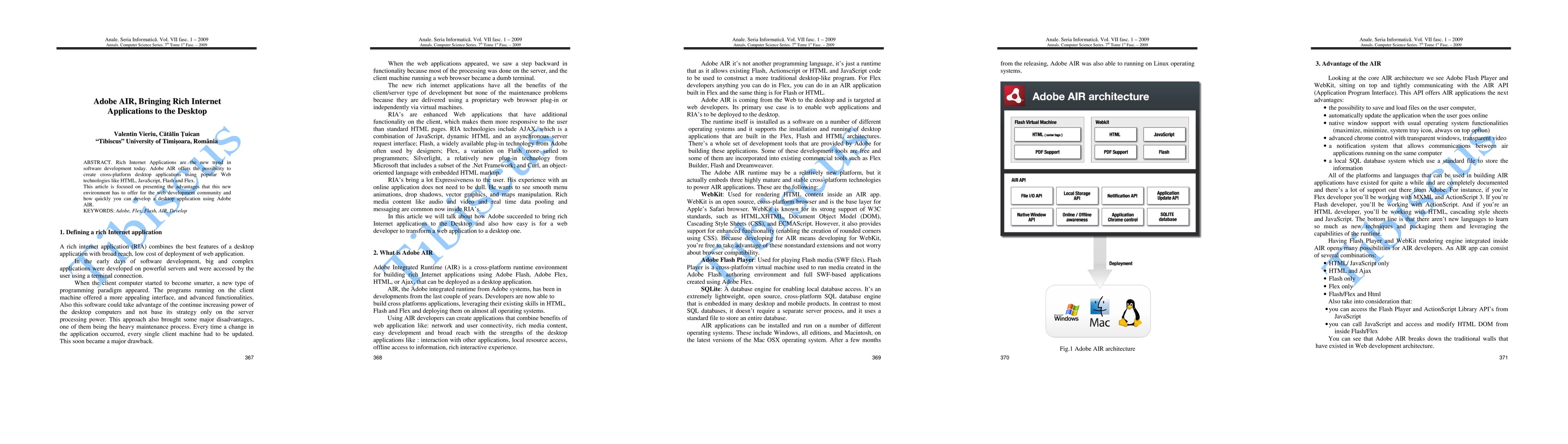 Rich Internet Applications are the new trend in software development today. Adobe AIR offers the possibility to create cross-platform desktop applications using popular Web technologies like HTML, JavaScript, Flash and Flex. This article is focused on presenting the advantages that this new environment has to offer for the web development community and how quickly you can develop a desktop application using Adobe AIR.
